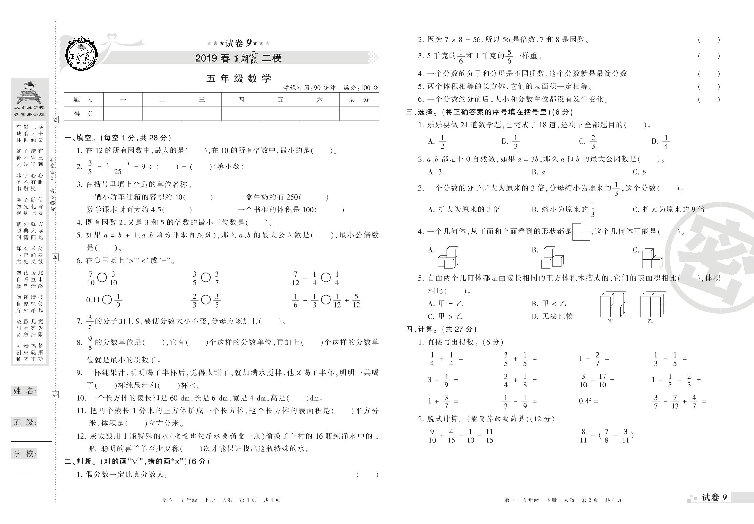 王朝霞期末模拟卷五年级下册数学(人教版)_R210804173713【9】