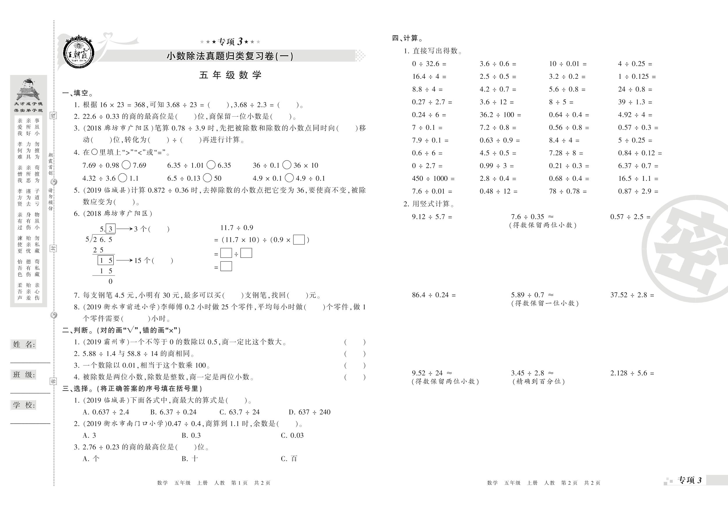王朝霞期末专项卷——小数除法真题归类复习五年级上册数学(人教版)_R210804173719【0】
