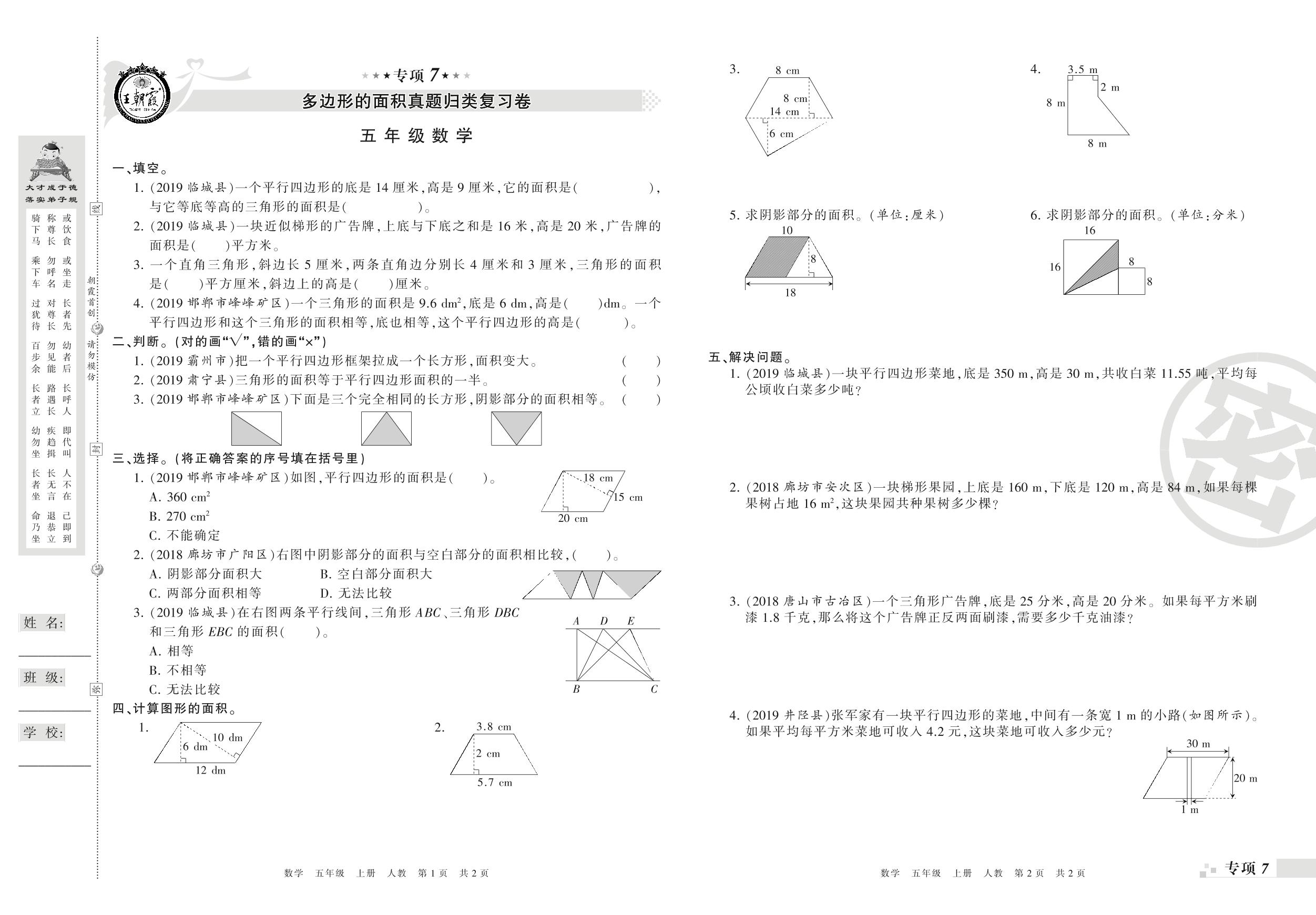 王朝霞期末专项卷——多边形的面积、位置、可能性及数学广角真题归类复习五年级上册数学(人教版)_R210804173724【0】
