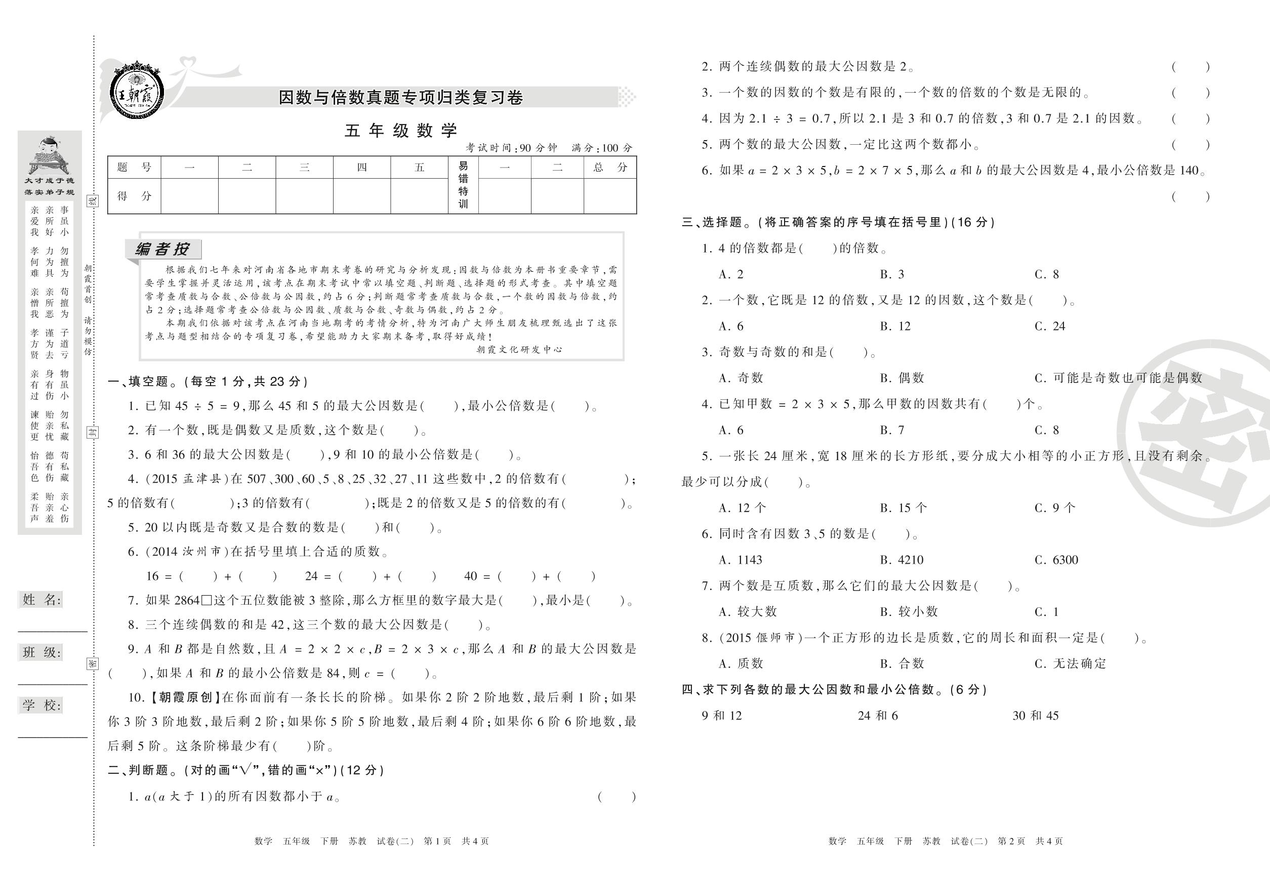 王朝霞期末专项卷五年级下册数学(苏教版)_R210804173840【2】