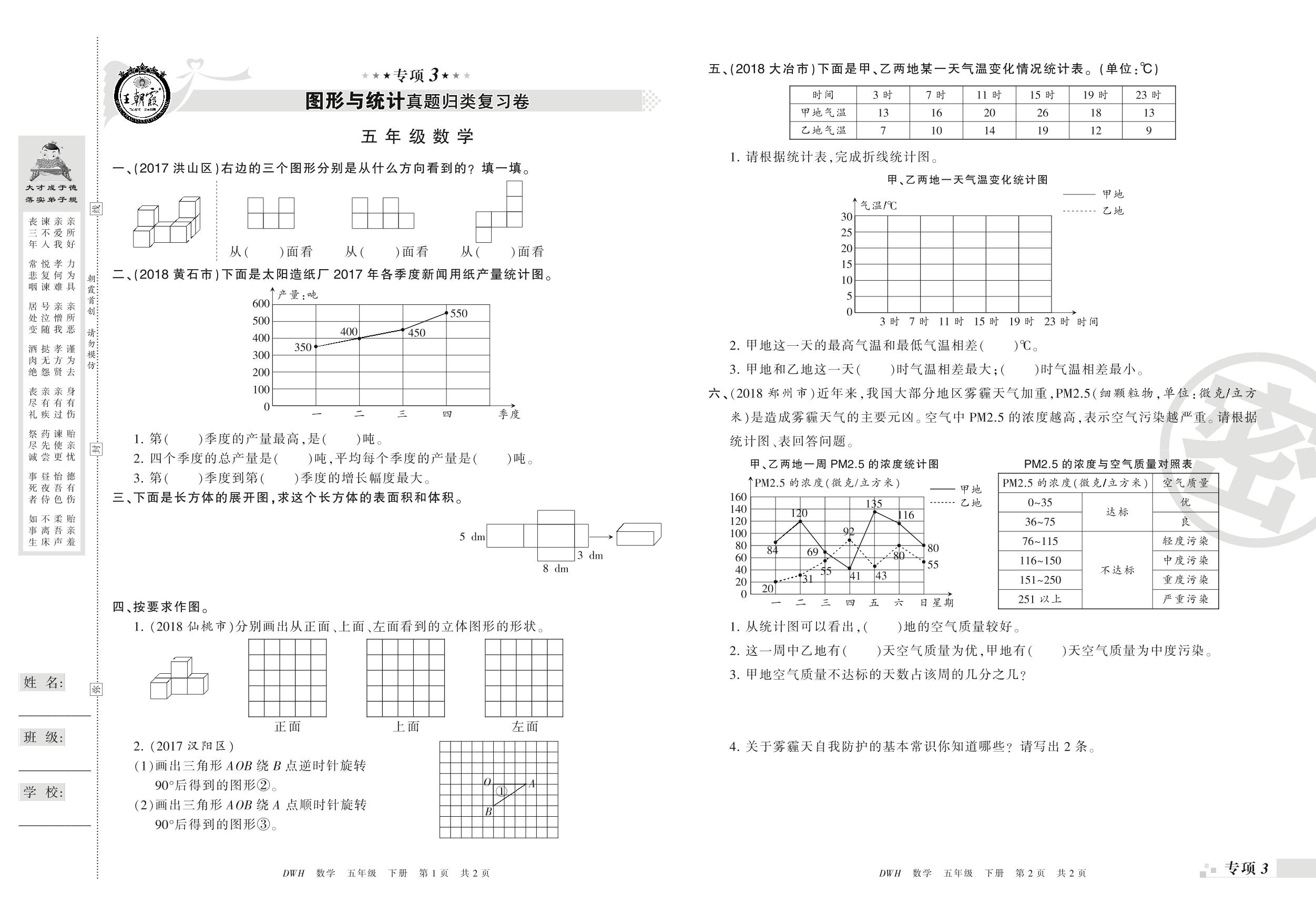 王朝霞期末专项卷——图形与统计、解决问题真题归类复习卷五年级下册数学(人教版)_R210804173922【0】