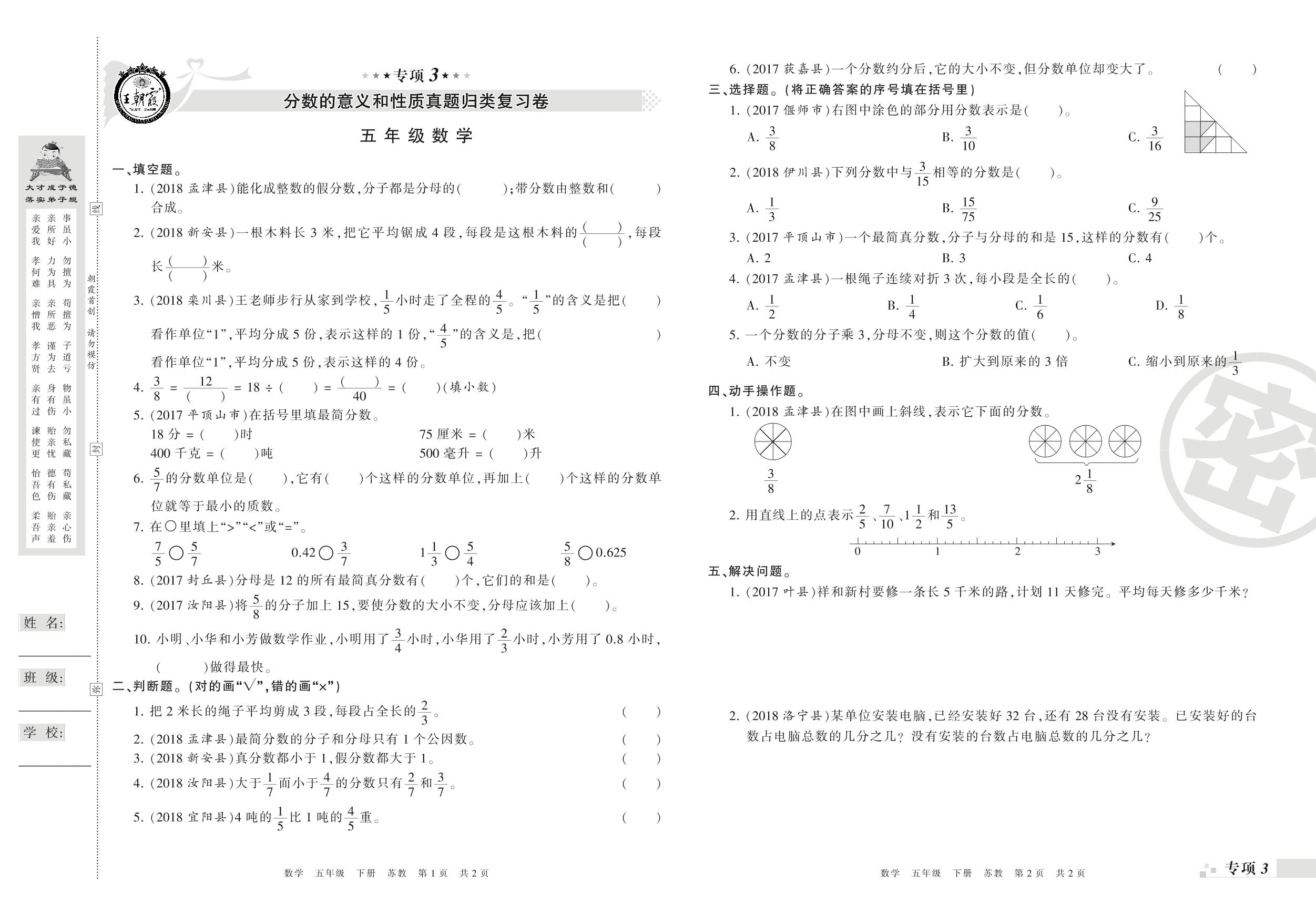 王朝霞期末专项卷——分数的意义和性质、分数的加法和减法(一)真题归类复习卷五年级下册数学(苏教版)_R210804174227【0】