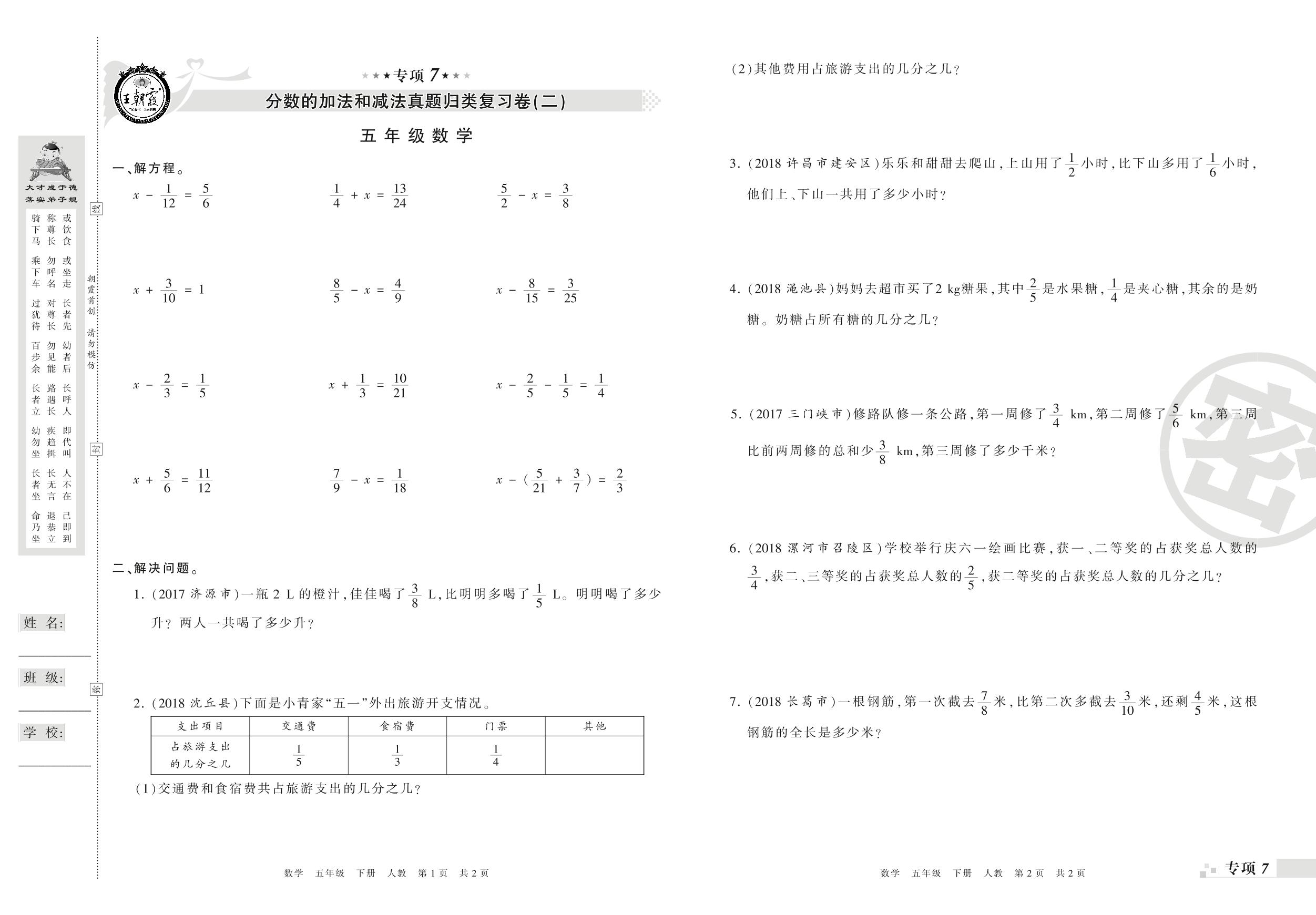 王朝霞期末专项卷——分数的加法和减法(二) 图形的运动、折线统计图及数学广角:找次品真题归类复习卷五年级下册数学(人教版)_R210804174331【0】