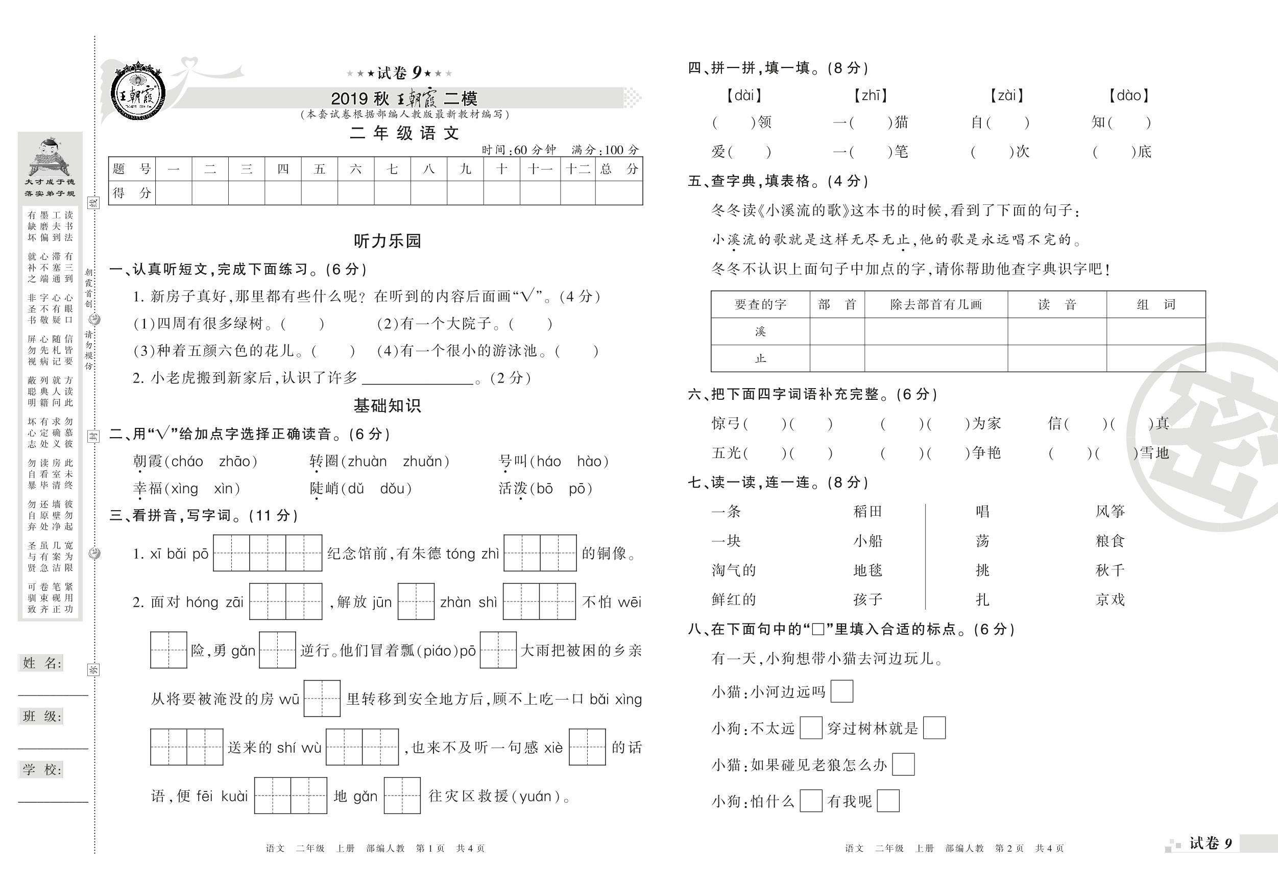 王朝霞期末模拟卷二年级上册语文(人教版)_R21080171315【9】
