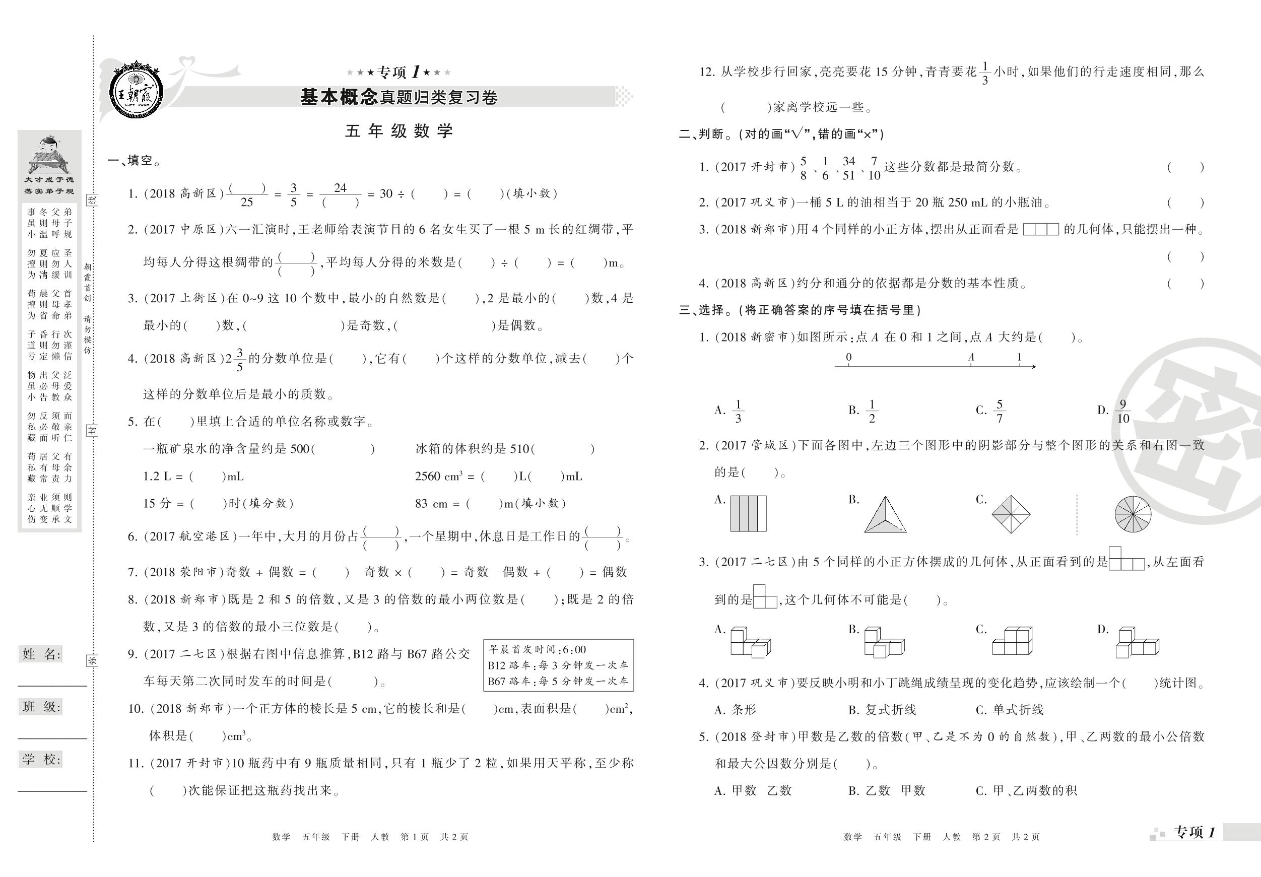 王朝霞期末专项卷——基本概念、计算真题归类复习卷五年级下册数学(人教版)_R210804174748【0】