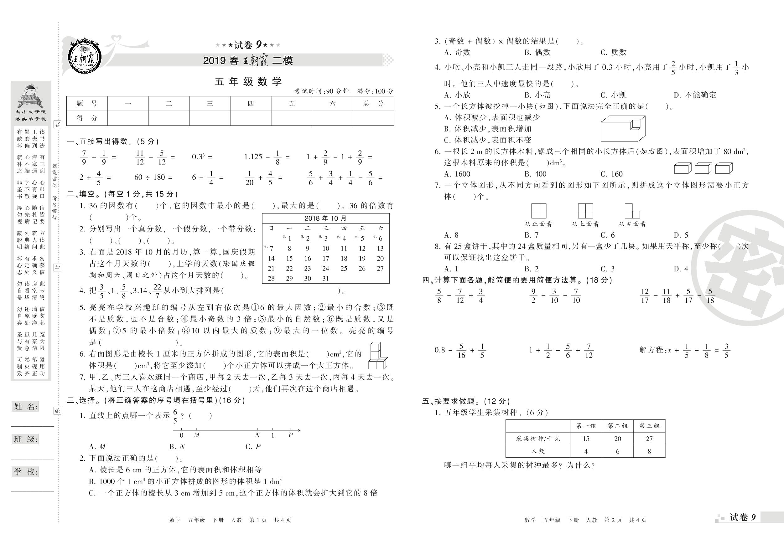 王朝霞期末模拟卷五年级下册数学(人教版)_R210804174822【9】