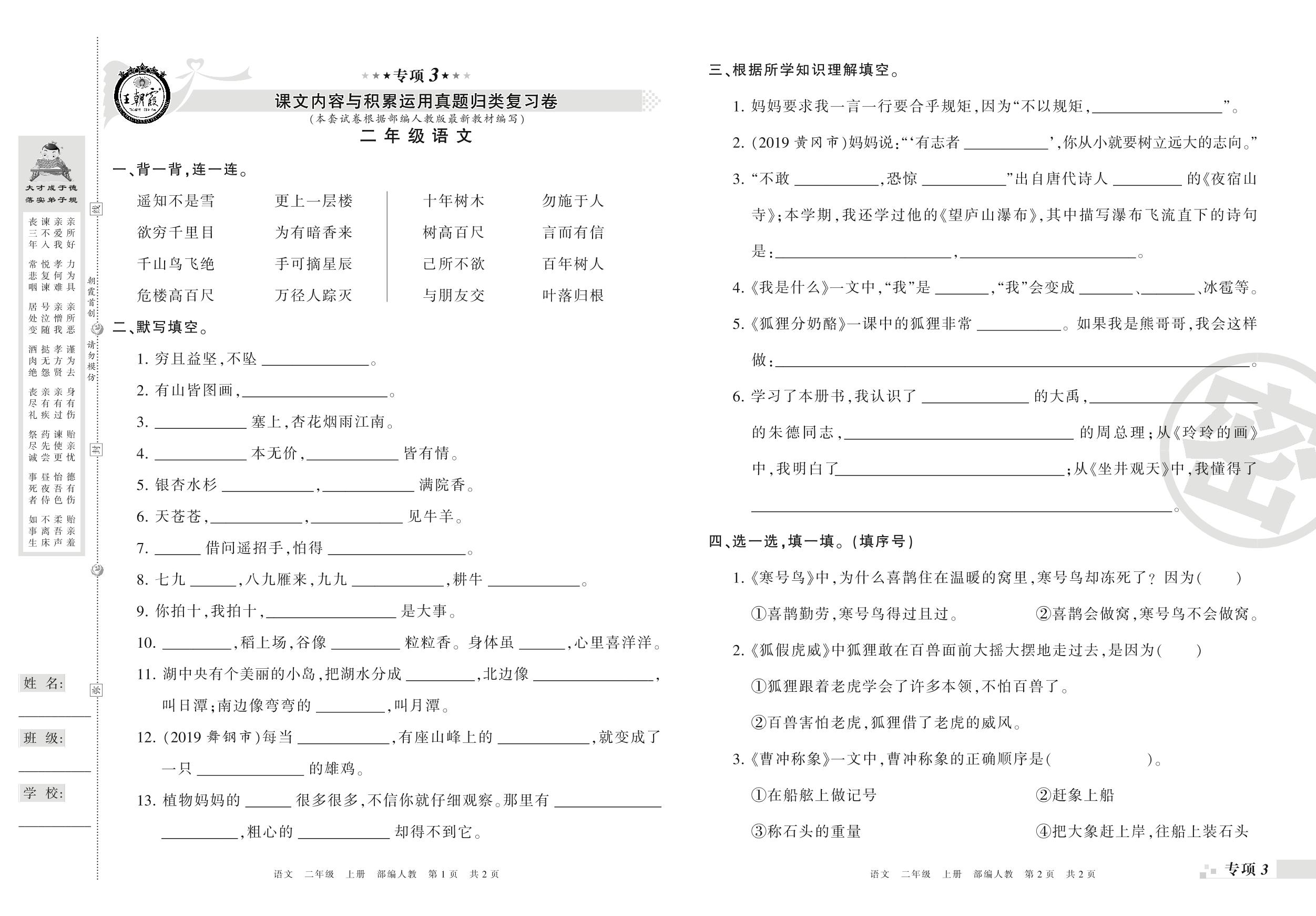 王朝霞期末专项卷——课文内容与积累运用、口语交际与写话真题归类复习卷二年级上册语文(人教版)_R21080171336【0】