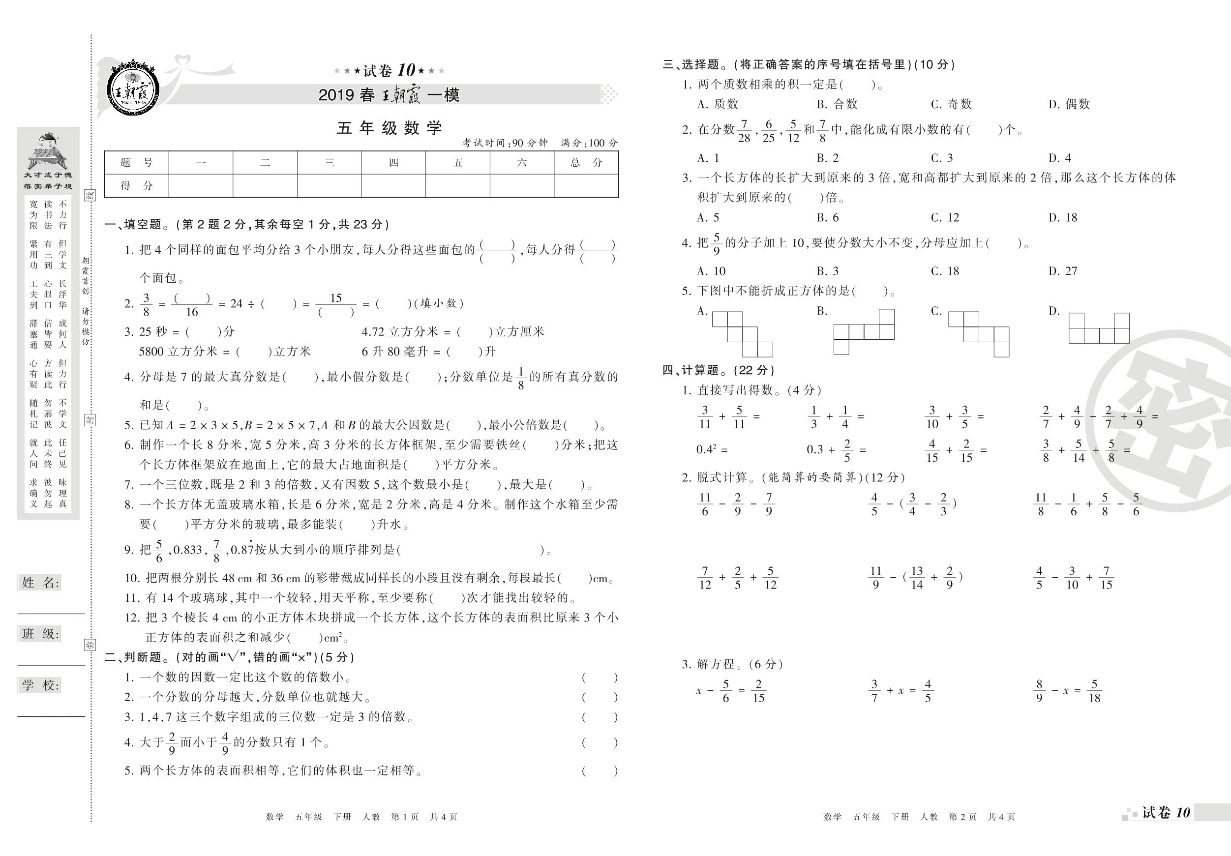 王朝霞期末模拟卷五年级下册数学(人教版)_R210804175002【10】