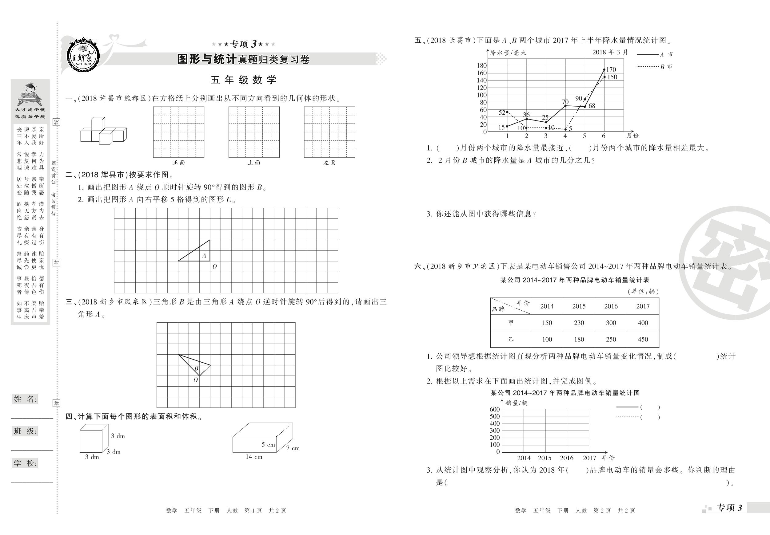 王朝霞期末专项卷——图形与统计、解决问题真题归类复习卷五年级下册数学(人教版)_R210804175015【0】