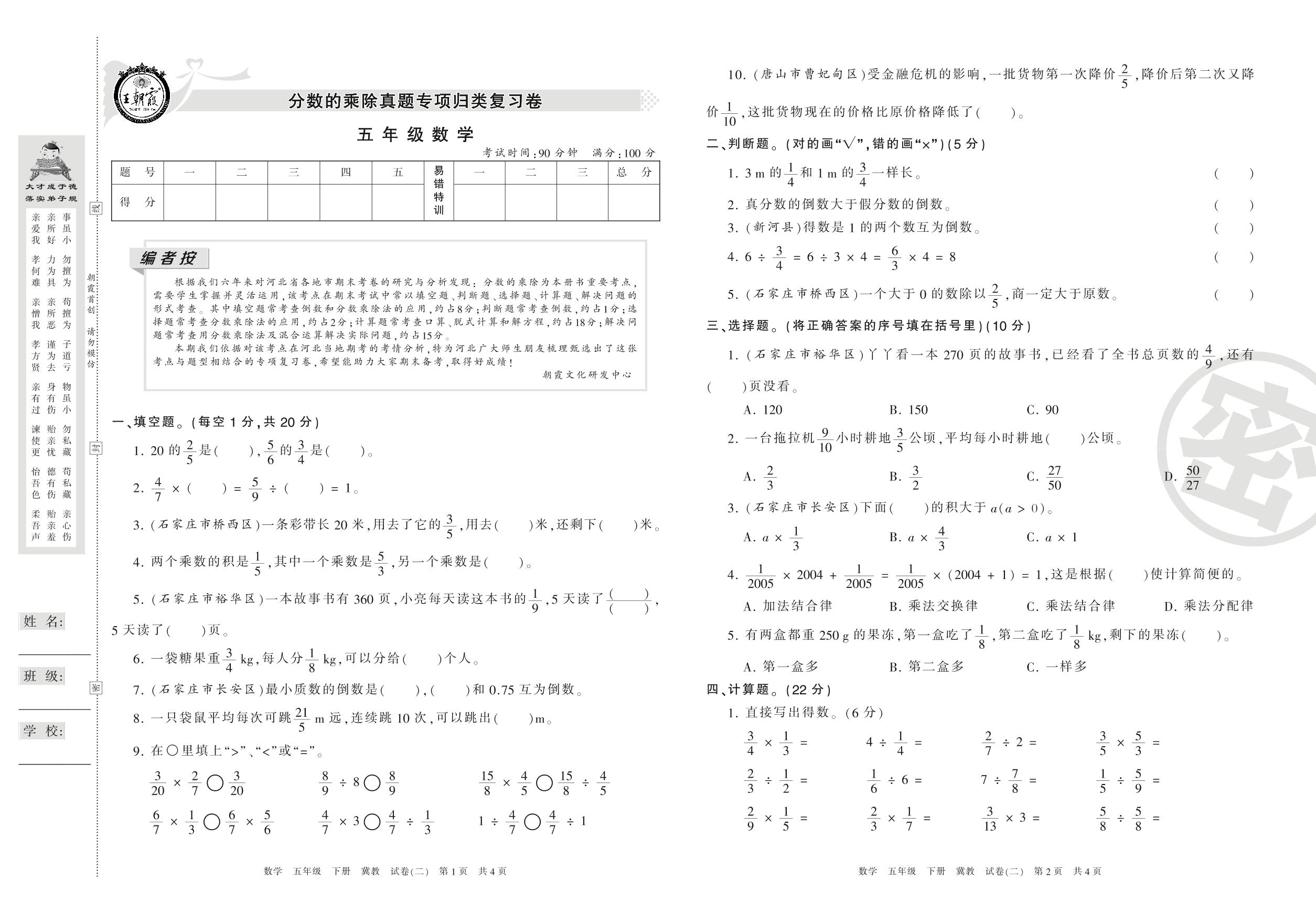 王朝霞期末专项卷五年级下册数学(冀教版)_R210804175138【2】