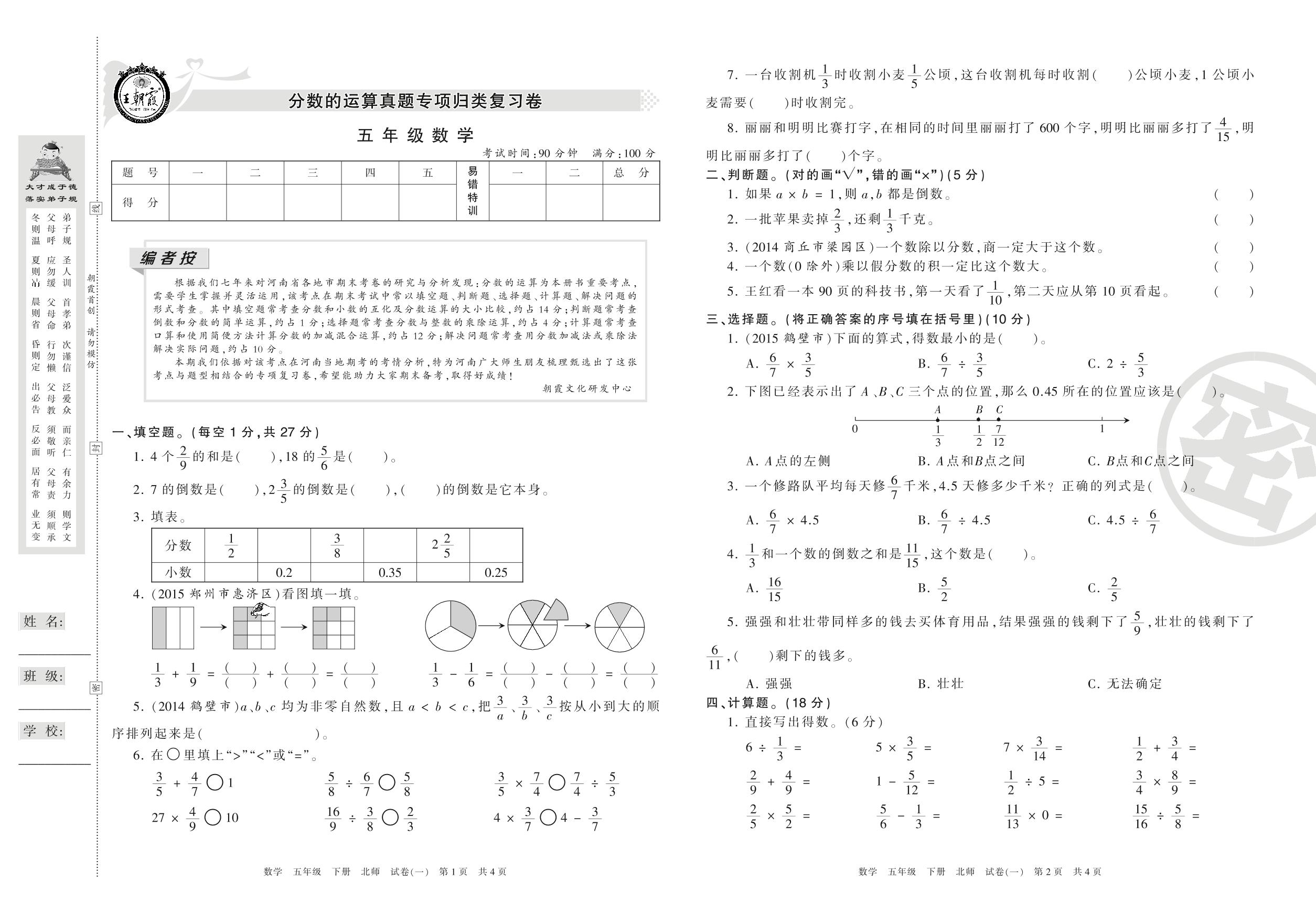 王朝霞期末专项卷五年级下册数学(北师版)_R210804175210【1】