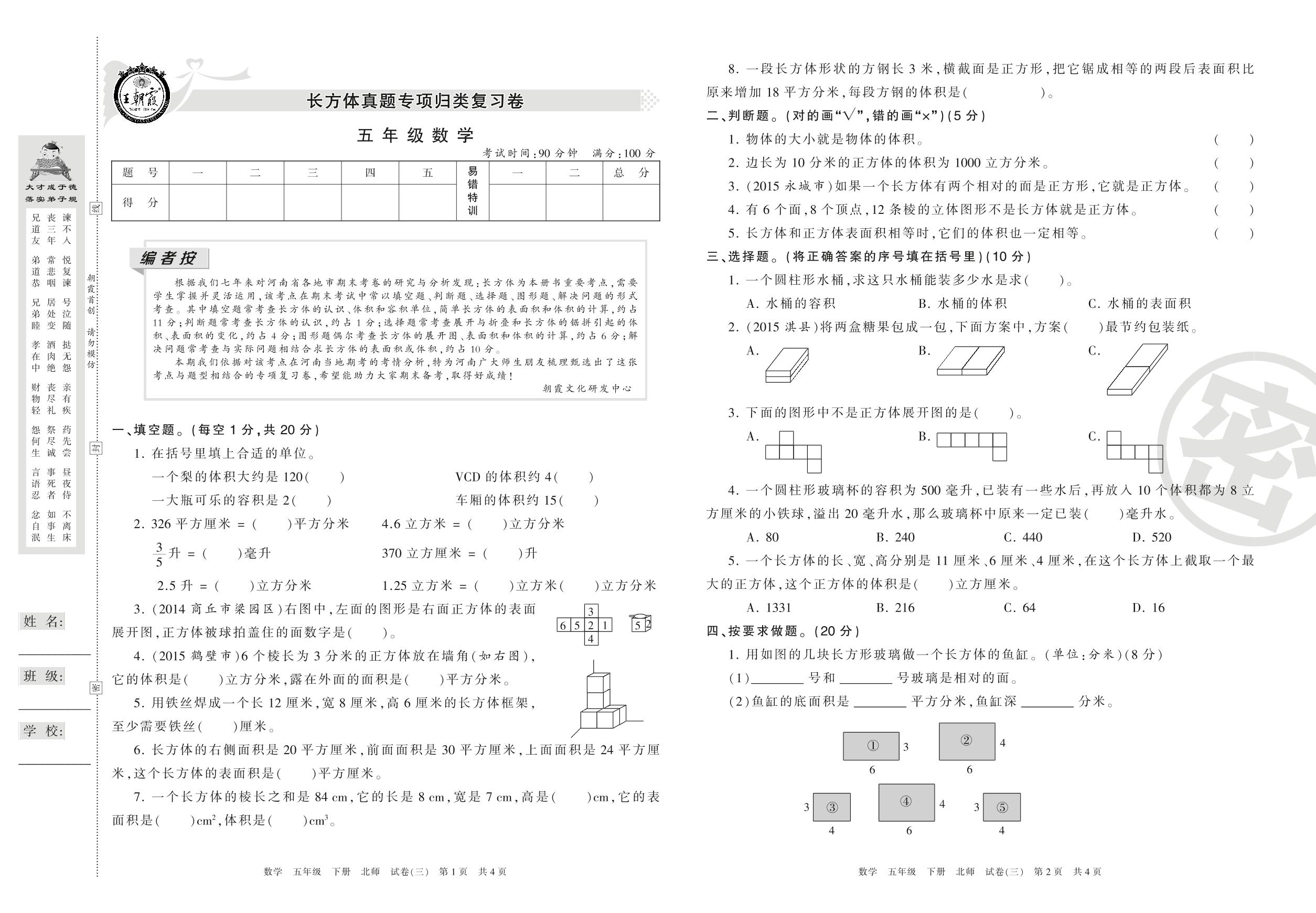 王朝霞期末专项卷五年级下册数学(北师版)_R210804175214【3】
