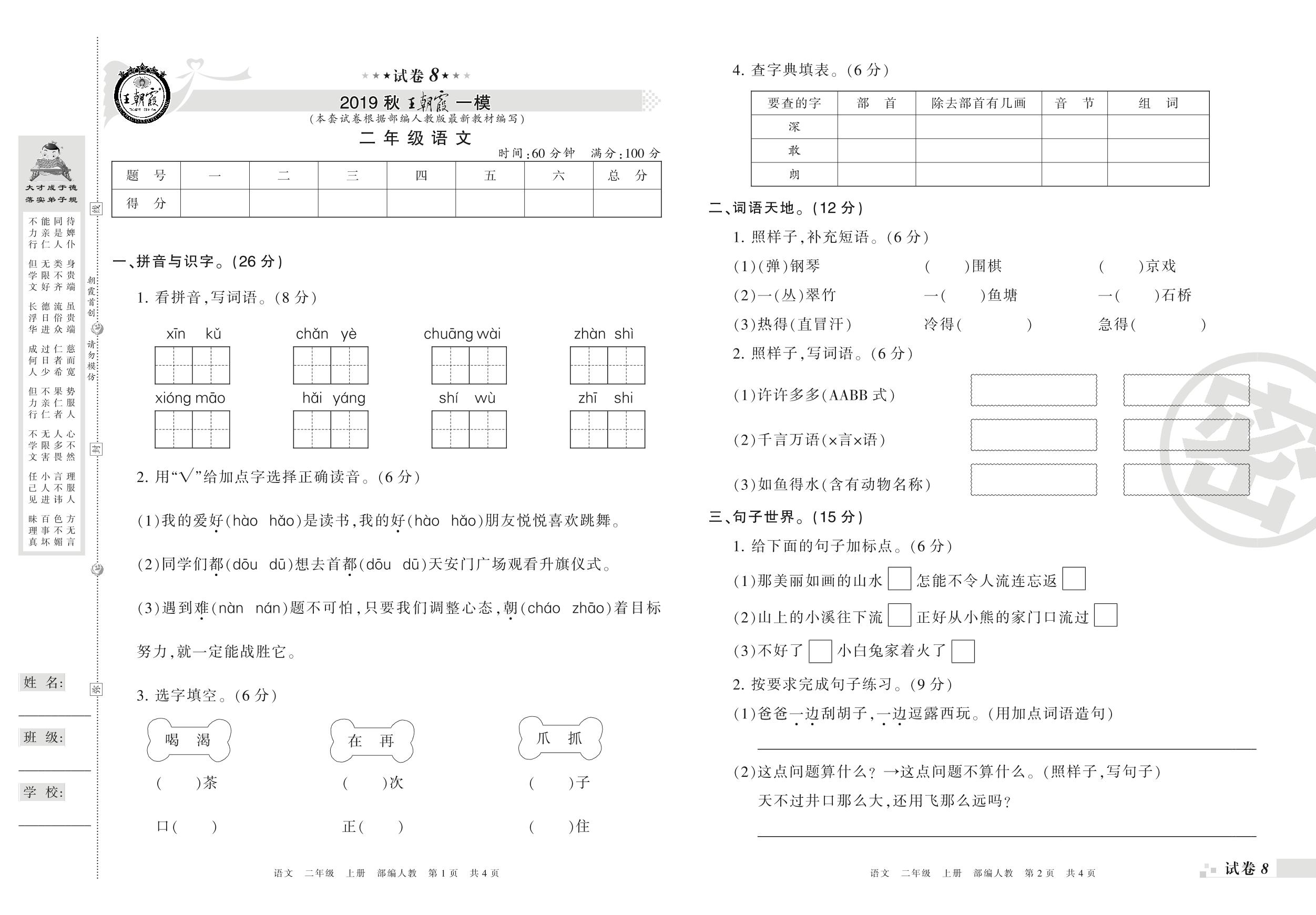 王朝霞期末模拟卷二年级上册语文(人教版)_R21080171422【8】