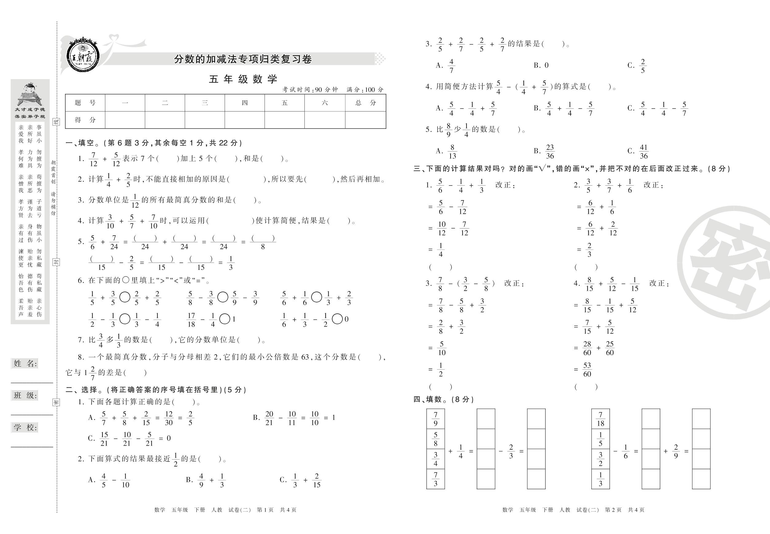 王朝霞期末专项卷五年级下册数学(人教版)_R210804175642【2】