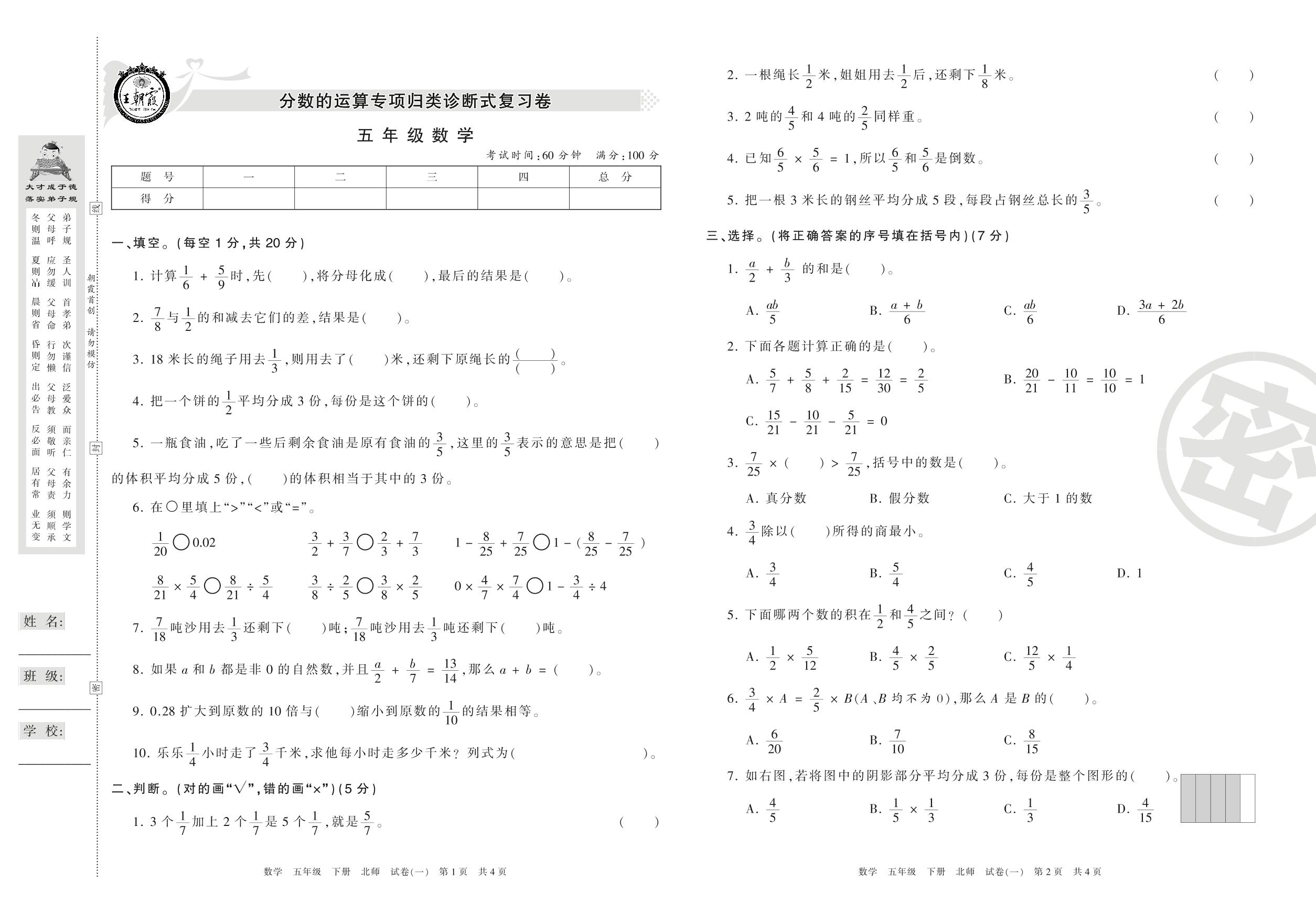 王朝霞期末专项卷五年级下册数学(北师版)_R210804180145【1】