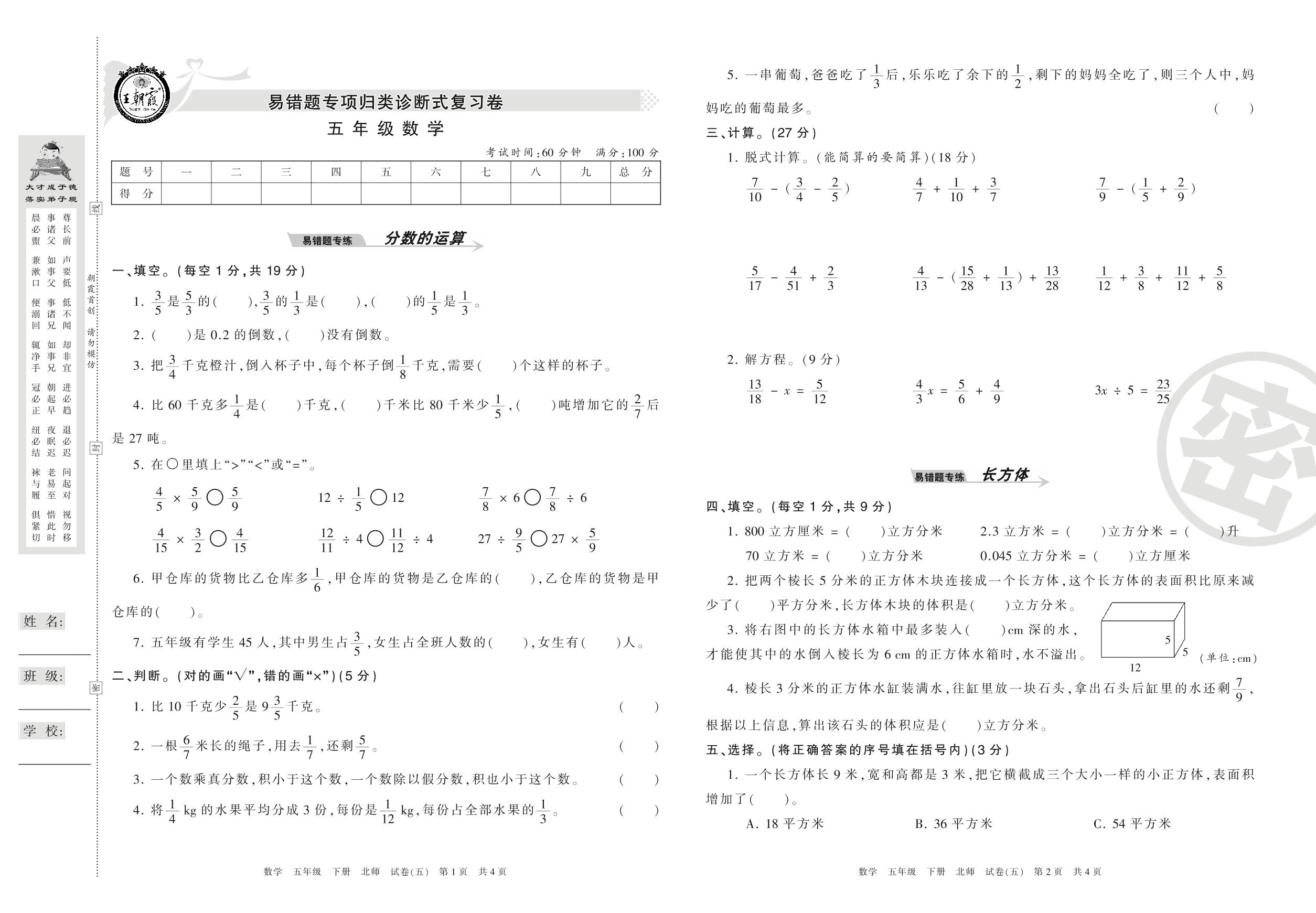 王朝霞期末专项卷五年级下册数学(北师版)_R210804180209【5】