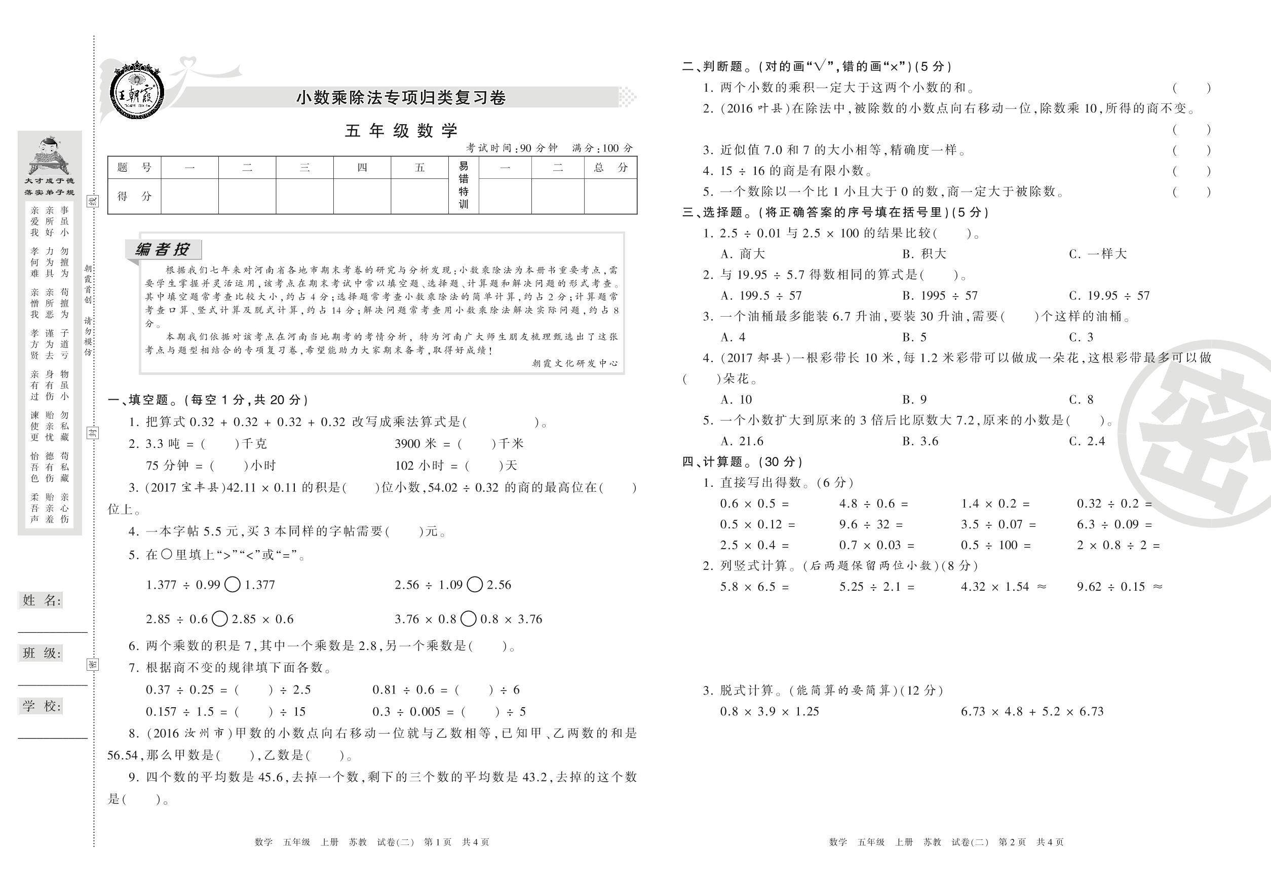 王朝霞期末专项卷五年级上册数学(苏教版)_R210804180318【2】