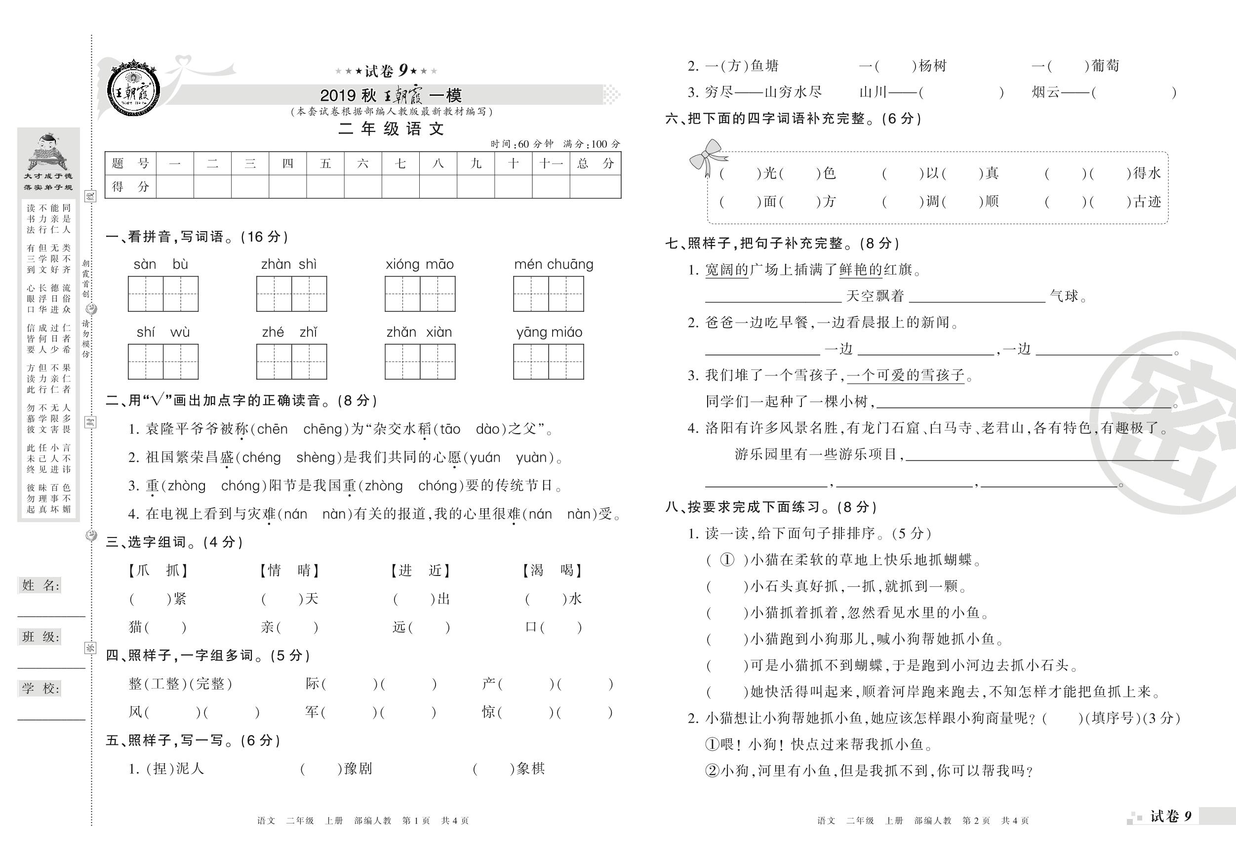 王朝霞期末模拟卷二年级上册语文(人教版)_R21080171511【9】