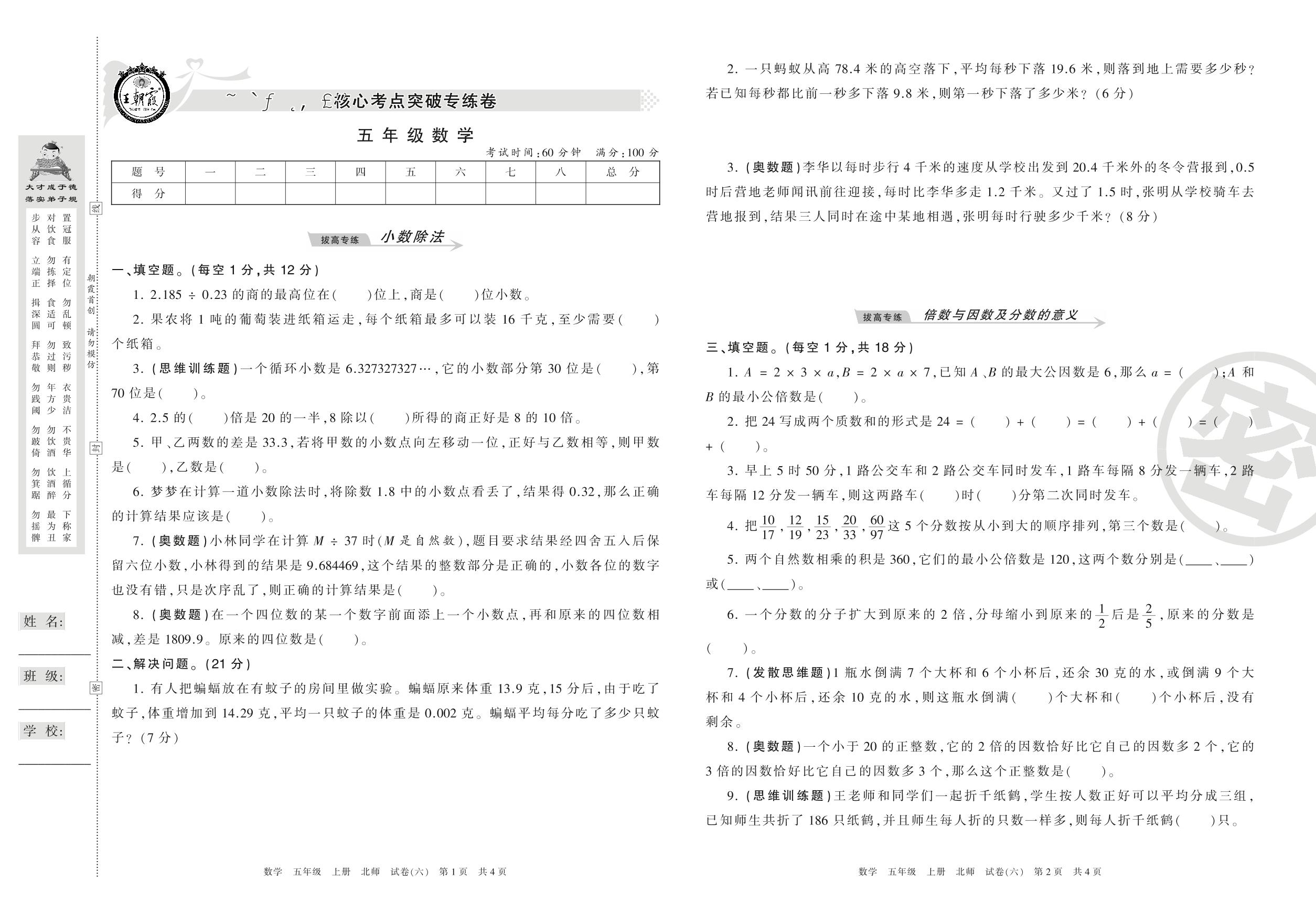 王朝霞期末专项卷五年级上册数学(北师版)【6】