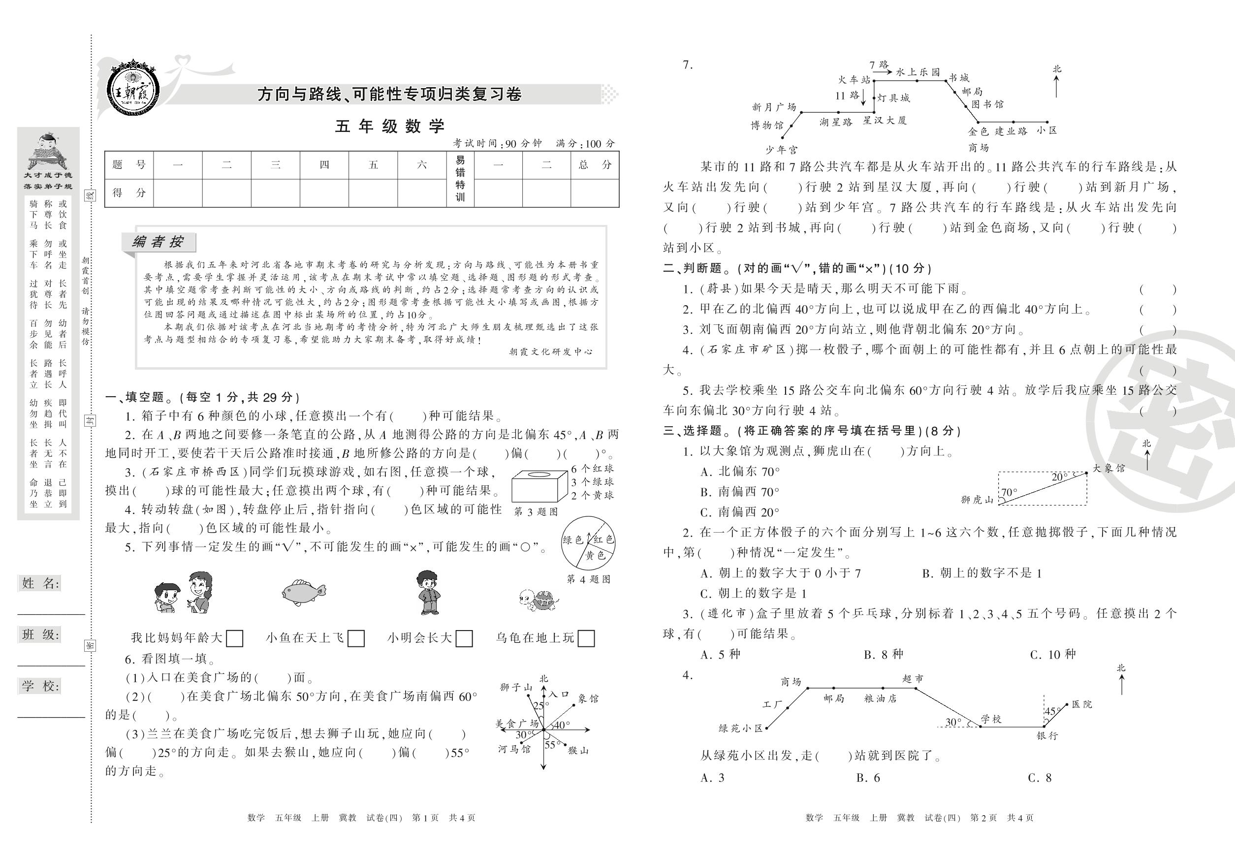 王朝霞期末专项卷五年级上册数学(冀教版)【4】