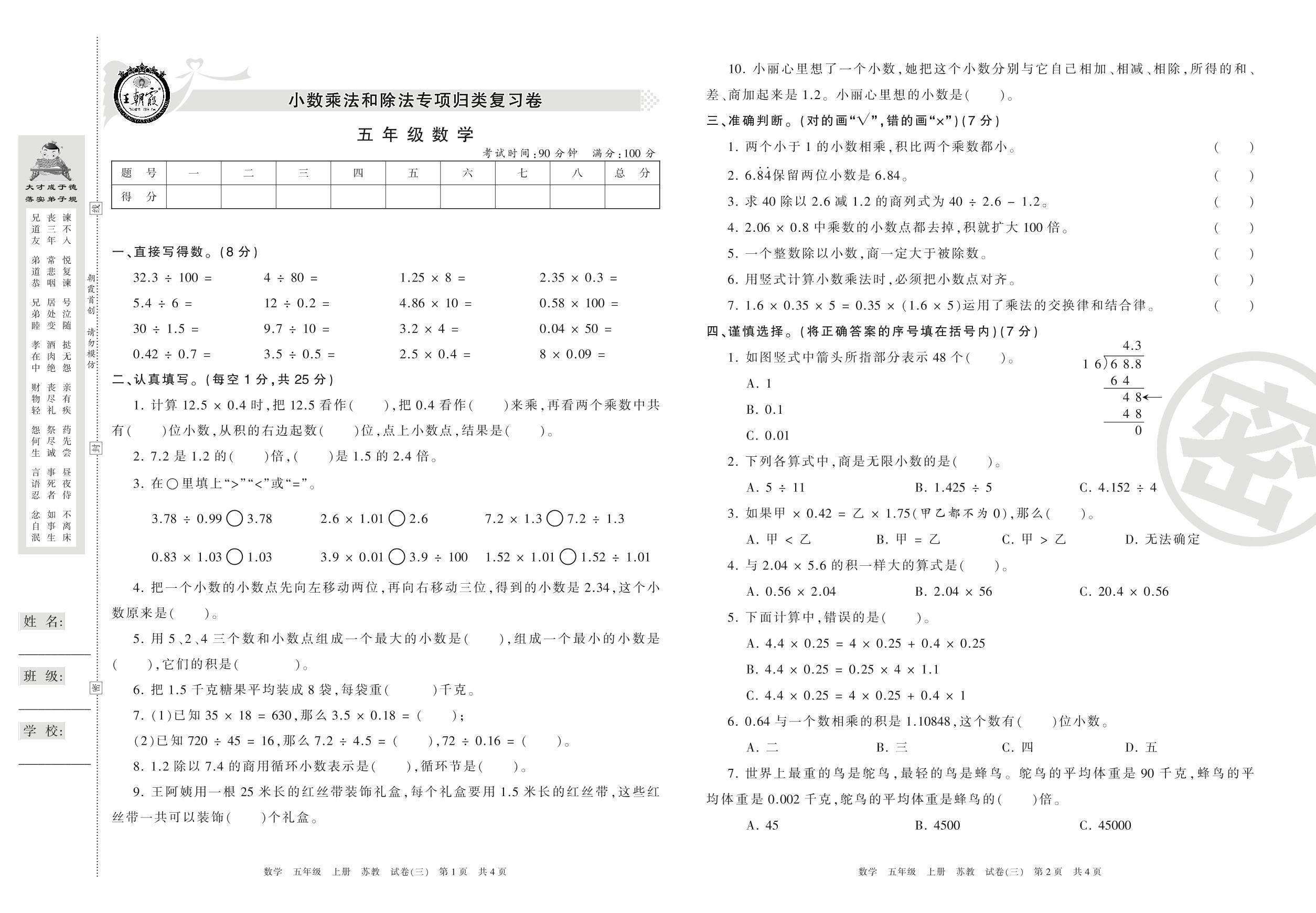 王朝霞期末专项卷五年级上册数学(苏教版)_R210804183710【3】