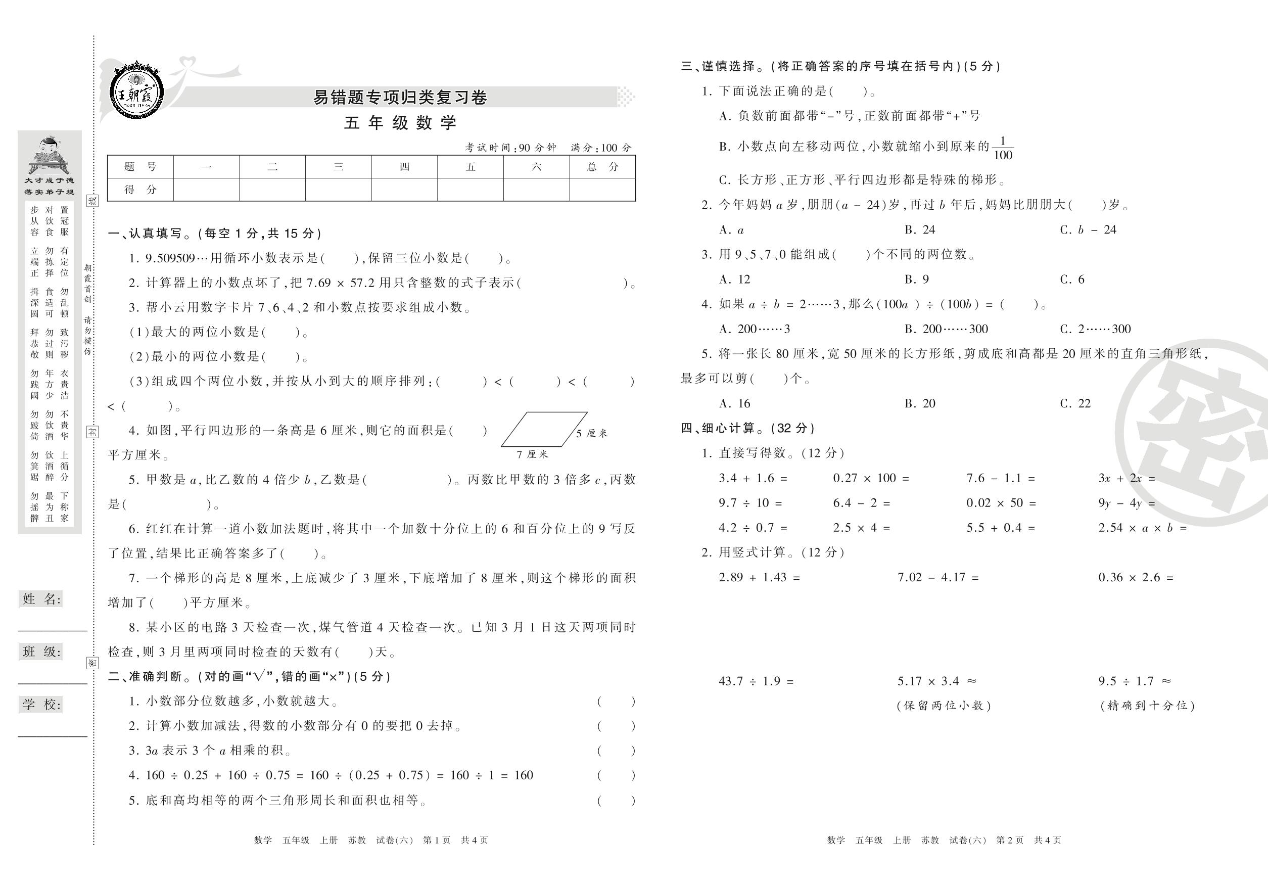 王朝霞期末专项卷五年级上册数学(苏教版)_R210804183716【6】