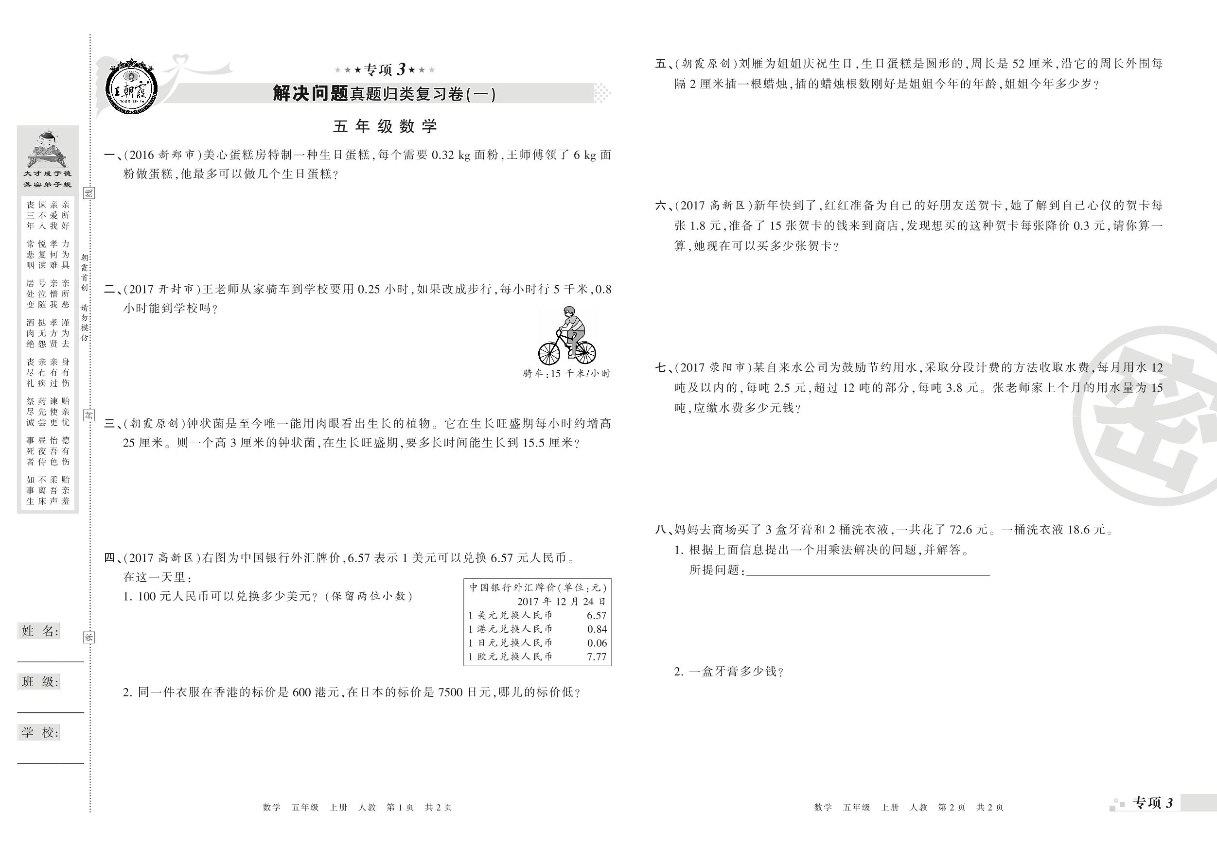 王朝霞期末专项卷——解决问题(一)(二)真题归类复习卷五年级上册数学(人教版)_R210804184536【0】