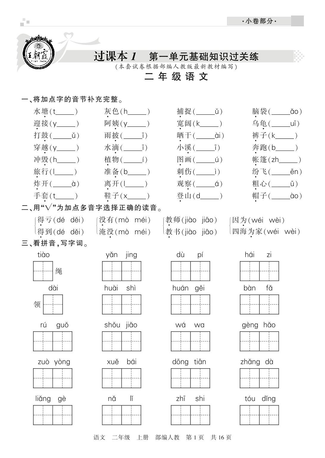 王朝霞期末过课本——基础知识过关练二年级上册语文(人教版)_R21080171646【0】