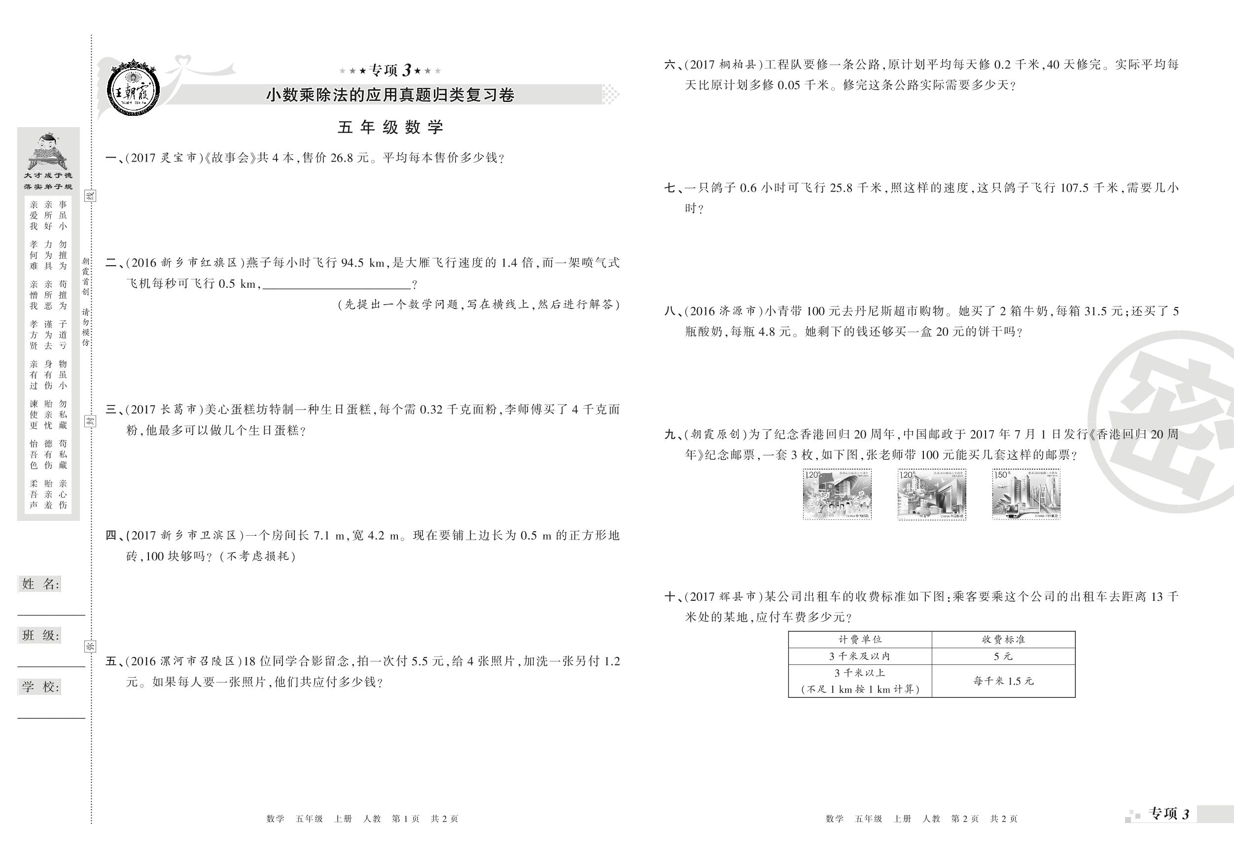 王朝霞期末专项卷——小数乘除法的应用、用字母表示数及解简易方程真题归类复习卷五年级上册数学(人教版)_R210804184705【0】