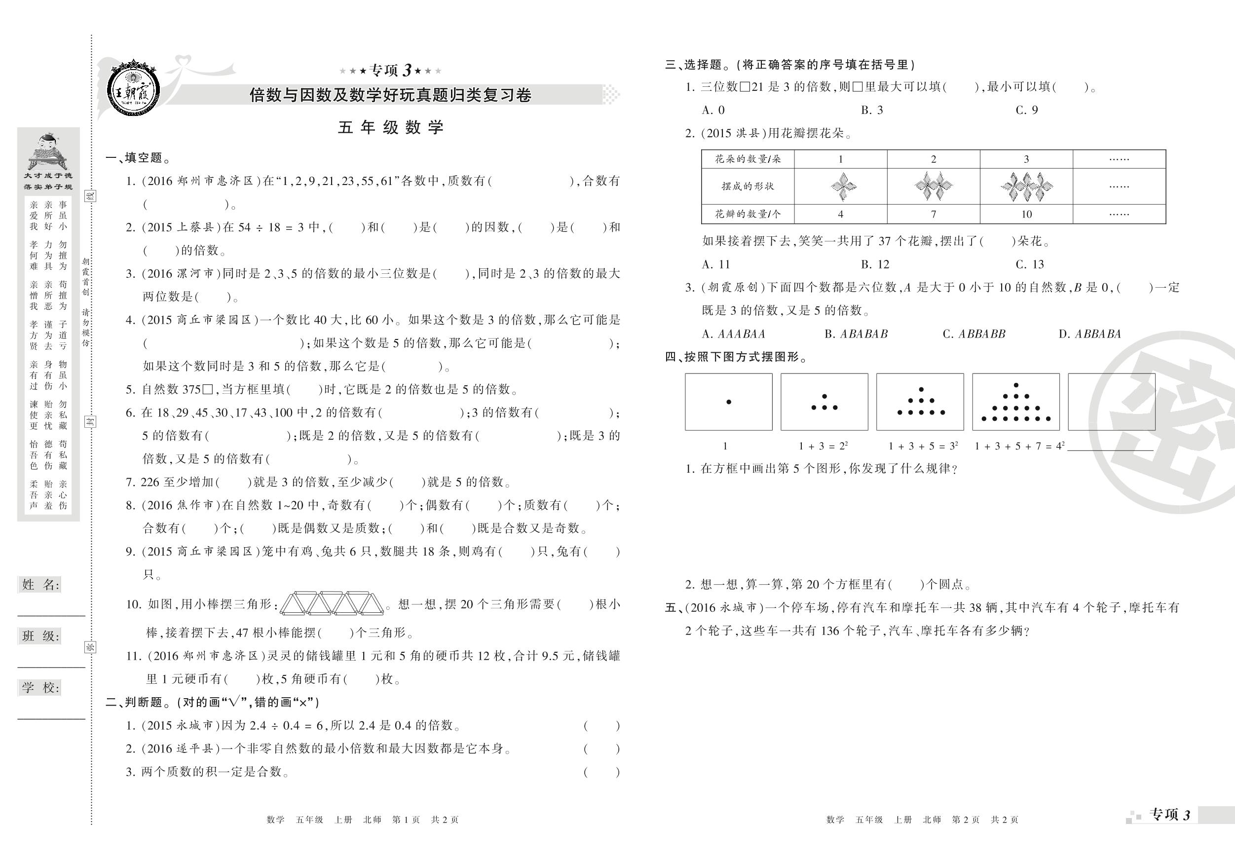 王朝霞期末专项卷——倍数与因数及数学好玩真题归类复习卷、多边形的面积真题归类复习卷五年级上册数学(北师版)_R210804184752【0】