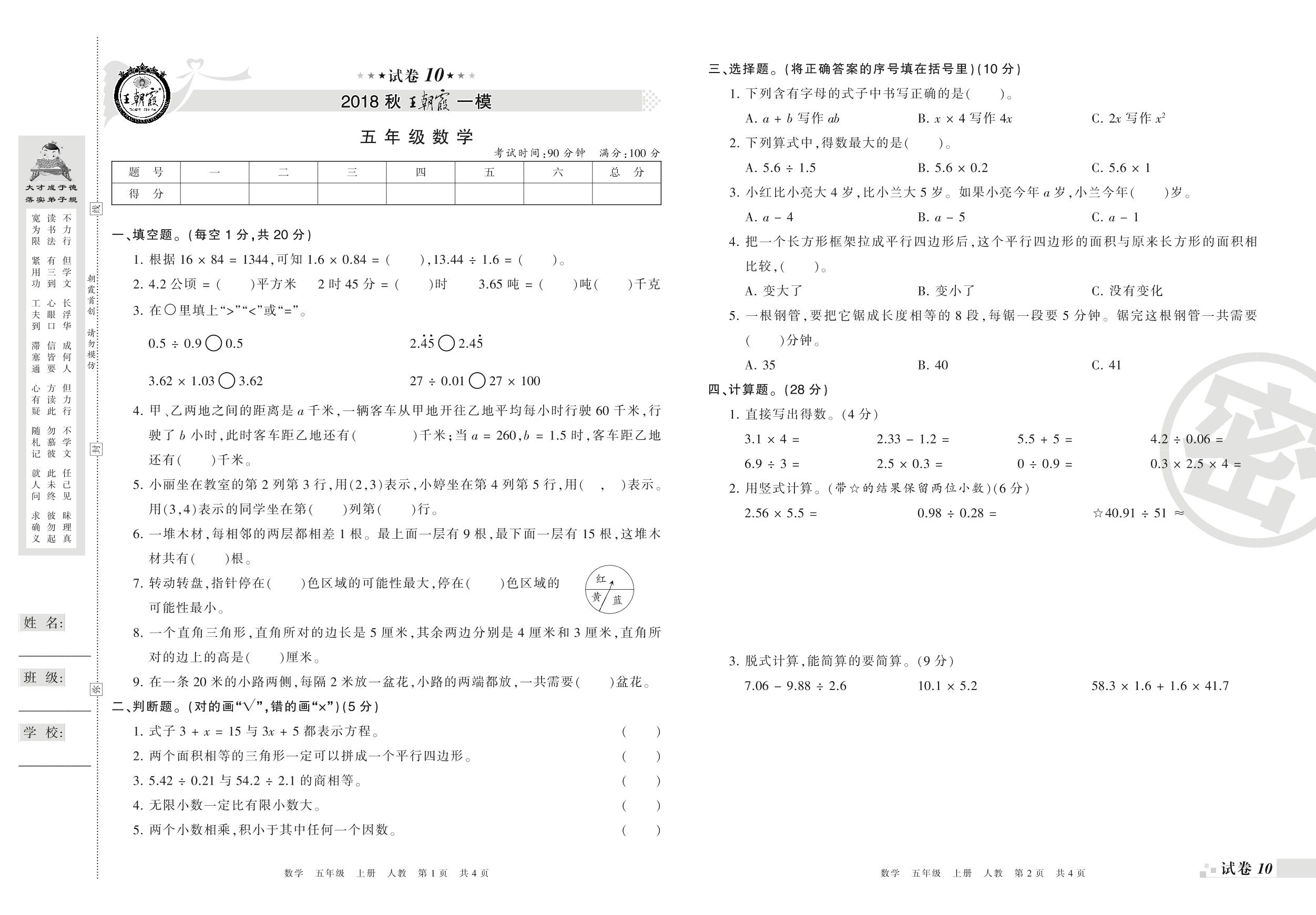 王朝霞期末模拟卷五年级上册数学(人教版)_R210804184920【10】