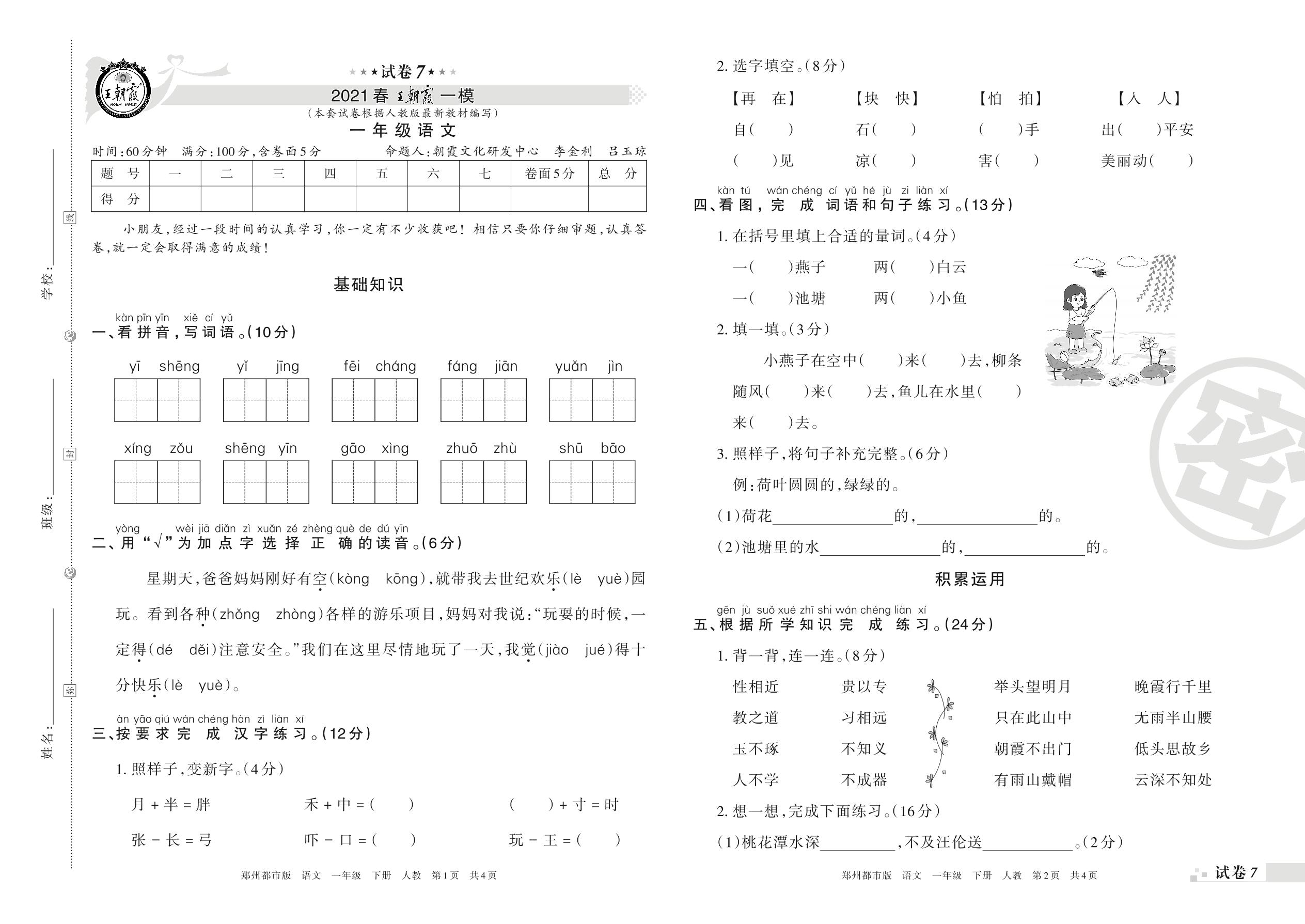 王朝霞期末模拟卷一年级下册语文(人教版)_R210731172539【7】