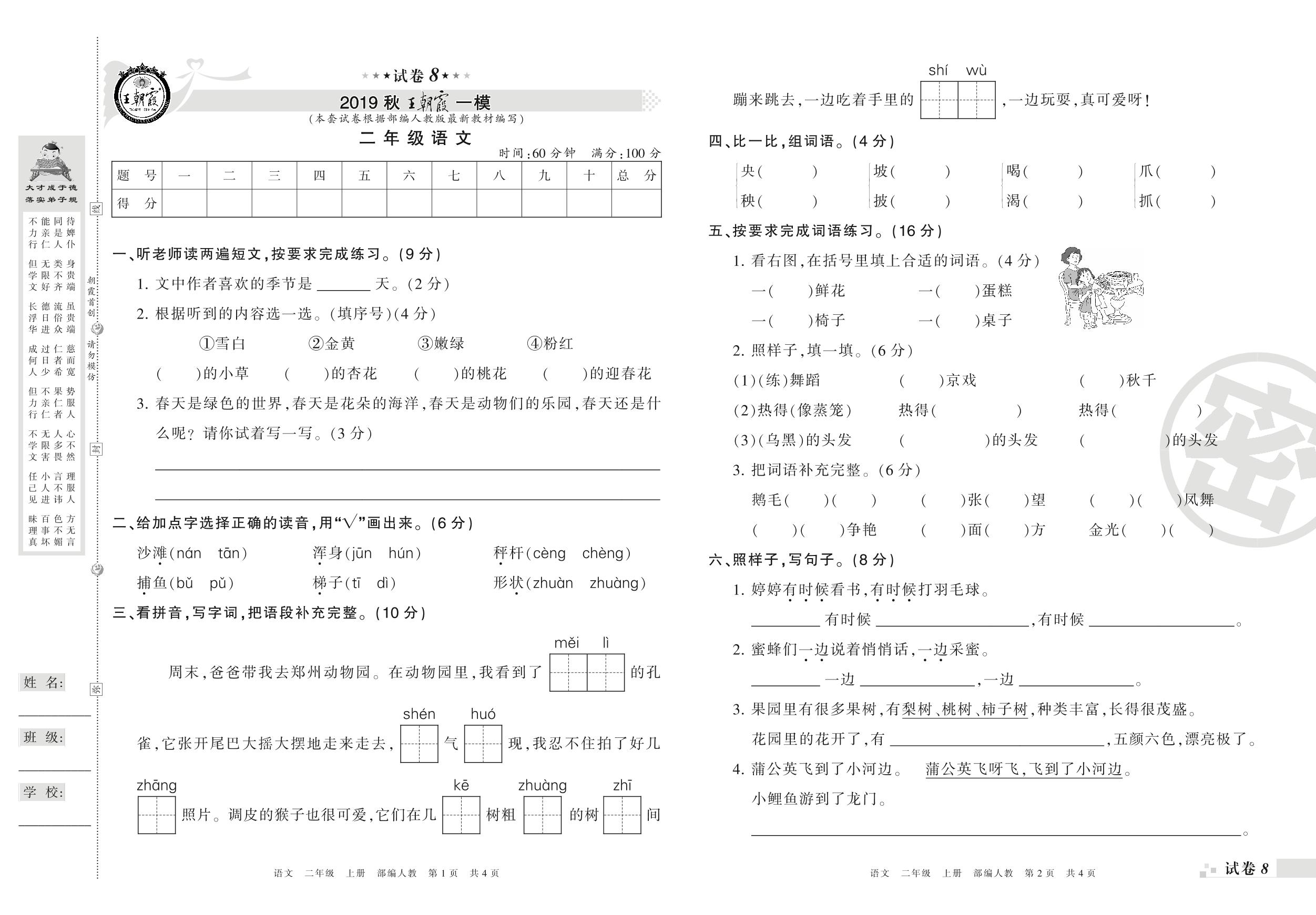 王朝霞期末模拟卷二年级上册语文(人教版)_R21080171727【8】