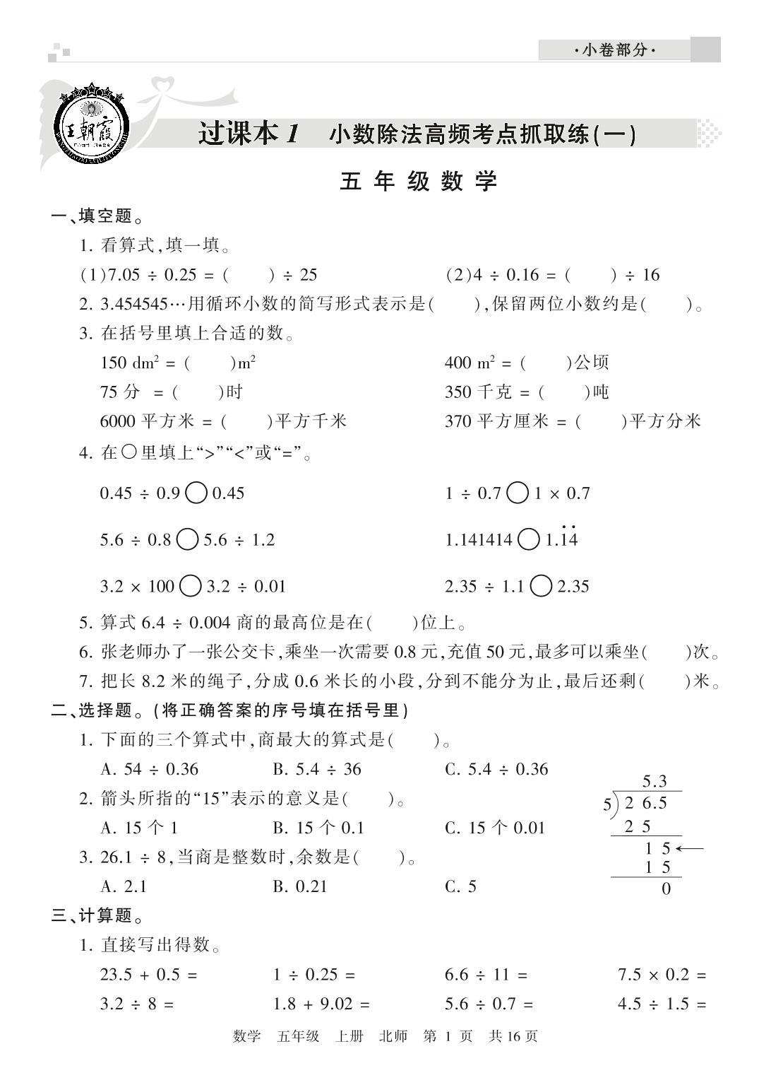 王朝霞期末过课本五年级上册数学(北师版)_R210804185435【0】