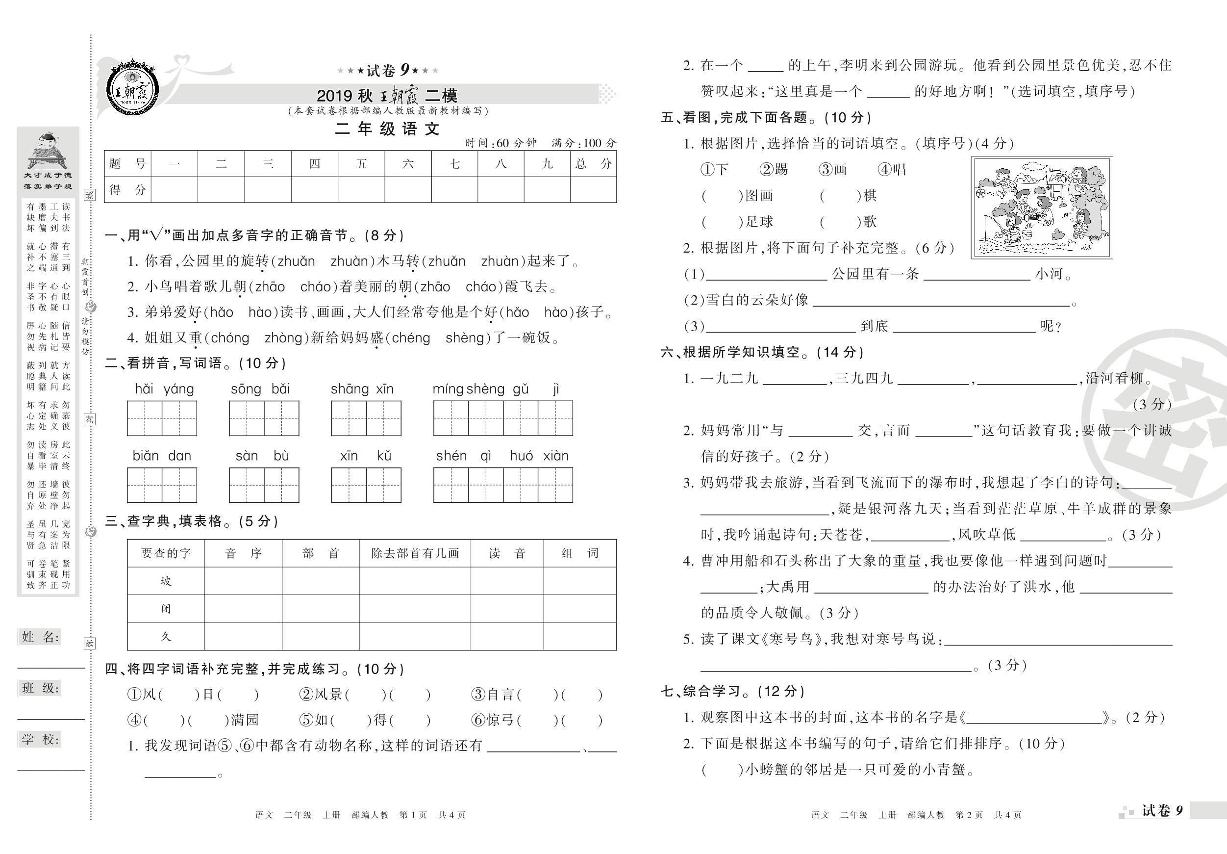 王朝霞期末模拟卷二年级上册语文(人教版)_R21080171731【9】