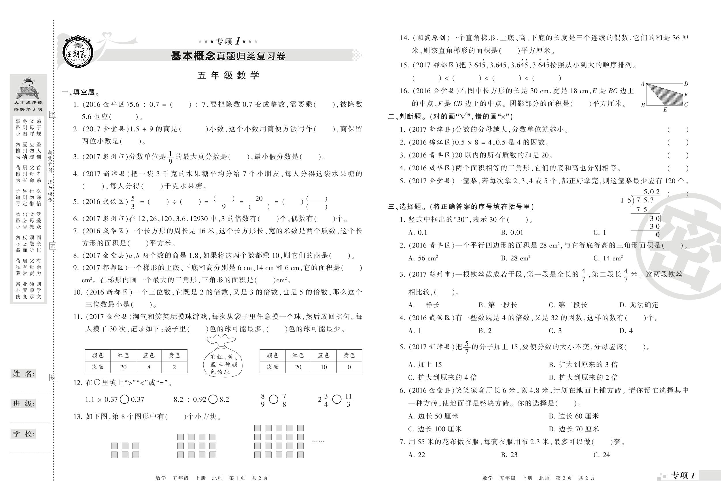 王朝霞期末专项卷——基本概念、计算真题归类复习卷五年级上册数学(北师版)_R210804185441【0】