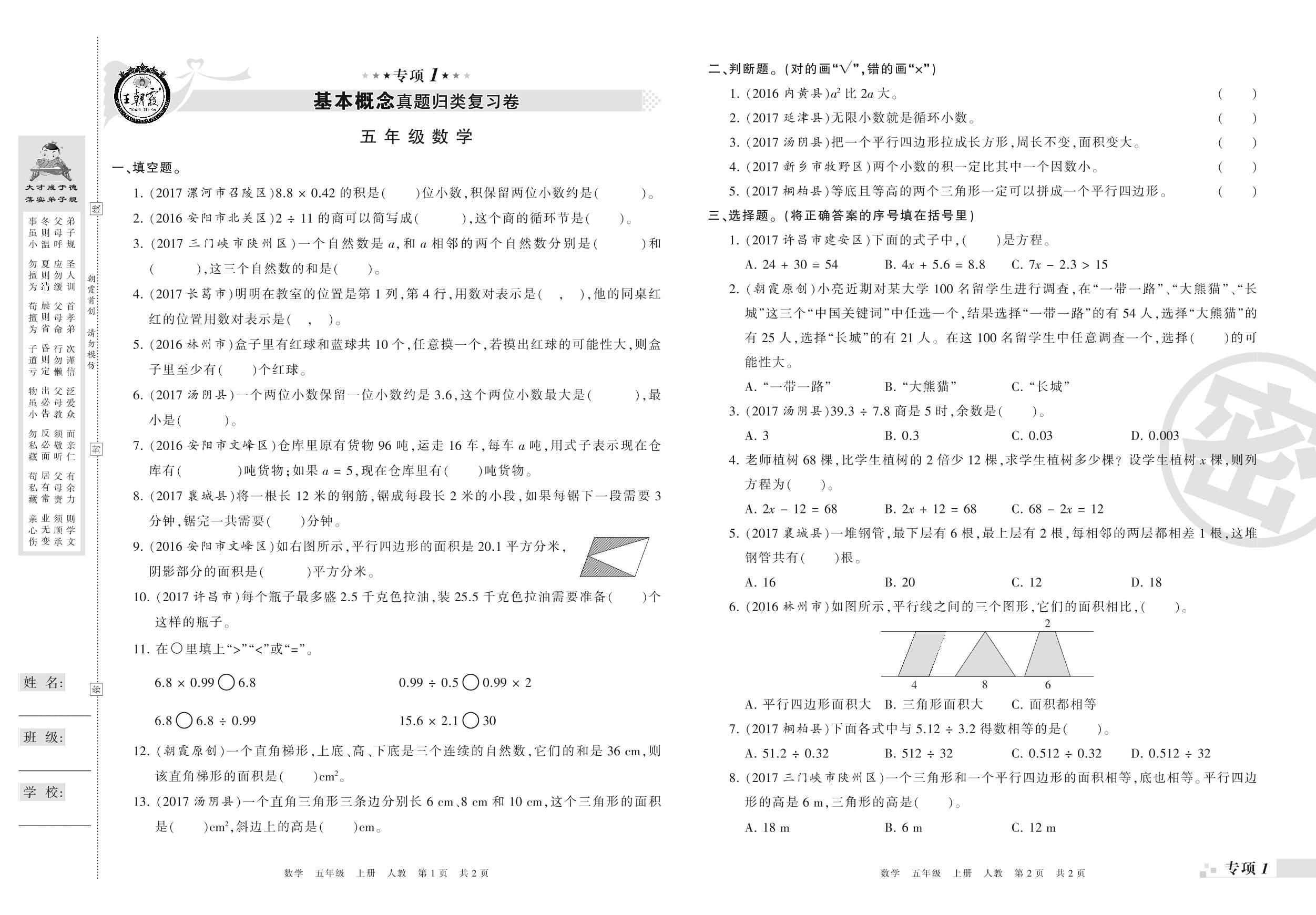 王朝霞期末专项卷——基本概念、计算(一)真题归类复习卷五年级上册数学(人教版)_R210804185515【0】