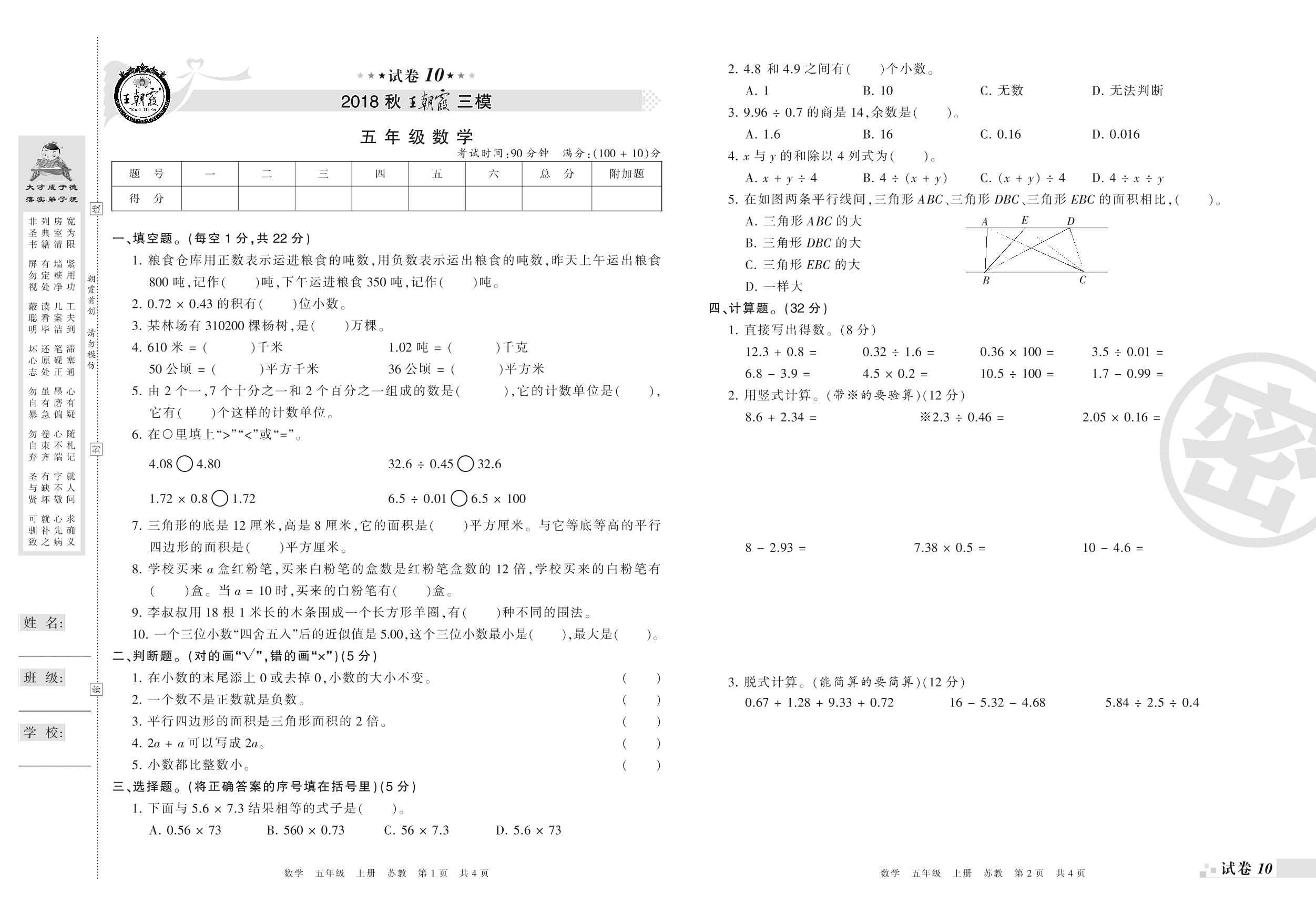 王朝霞期末模拟卷五年级上册数学(苏教版)_R210804185635【10】