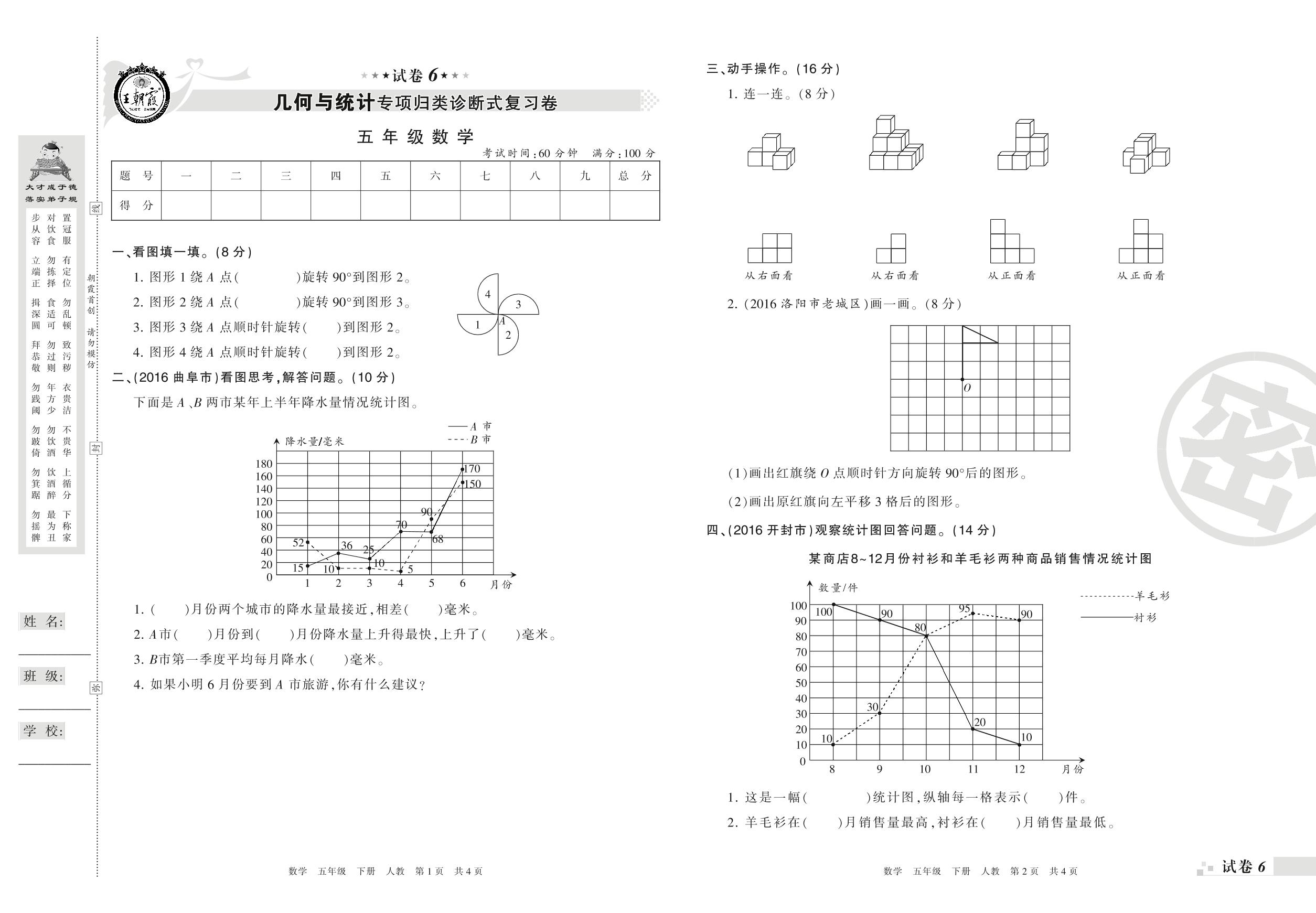 王朝霞期末专项卷——几何与统计专项归类诊断式复习卷五年级下册数学(人教版)【6】