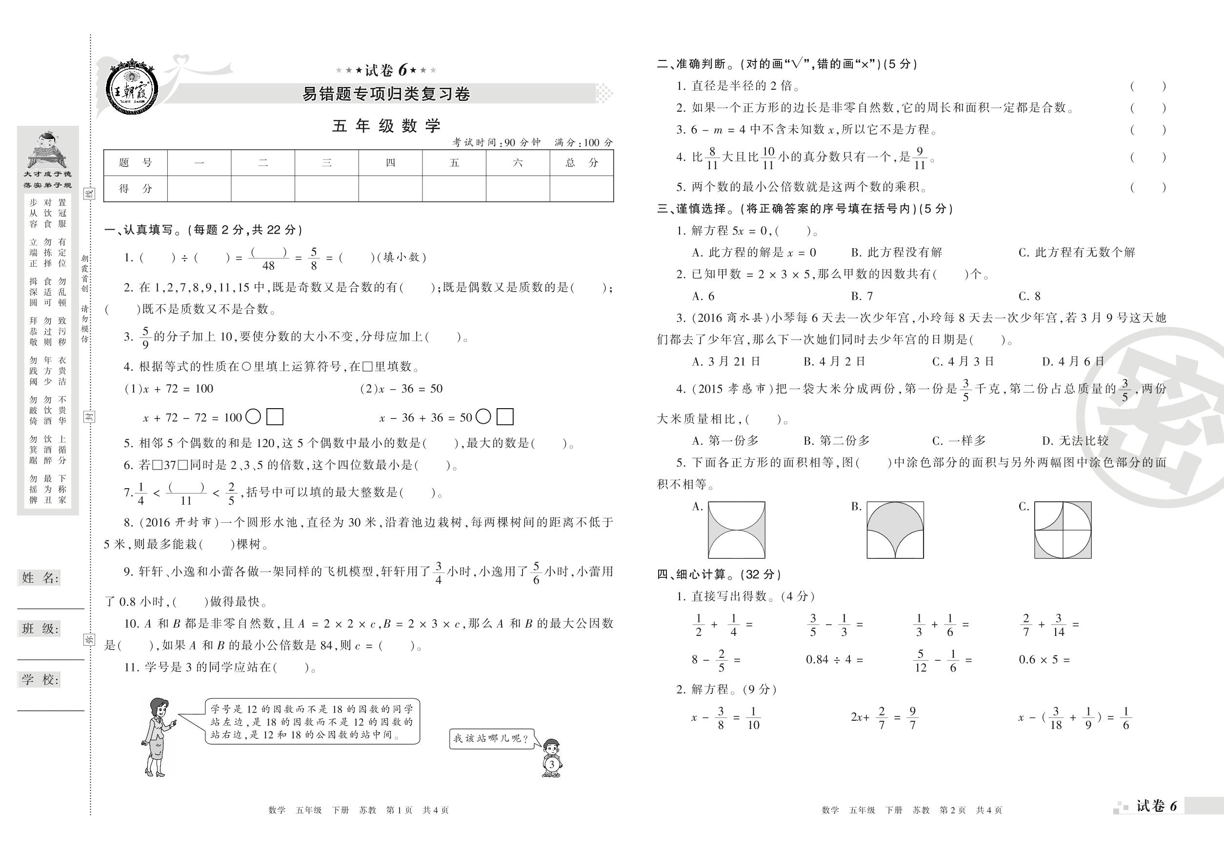 王朝霞期末专项卷——易错题专项归类复习卷五年级下册数学(苏教版)【6】