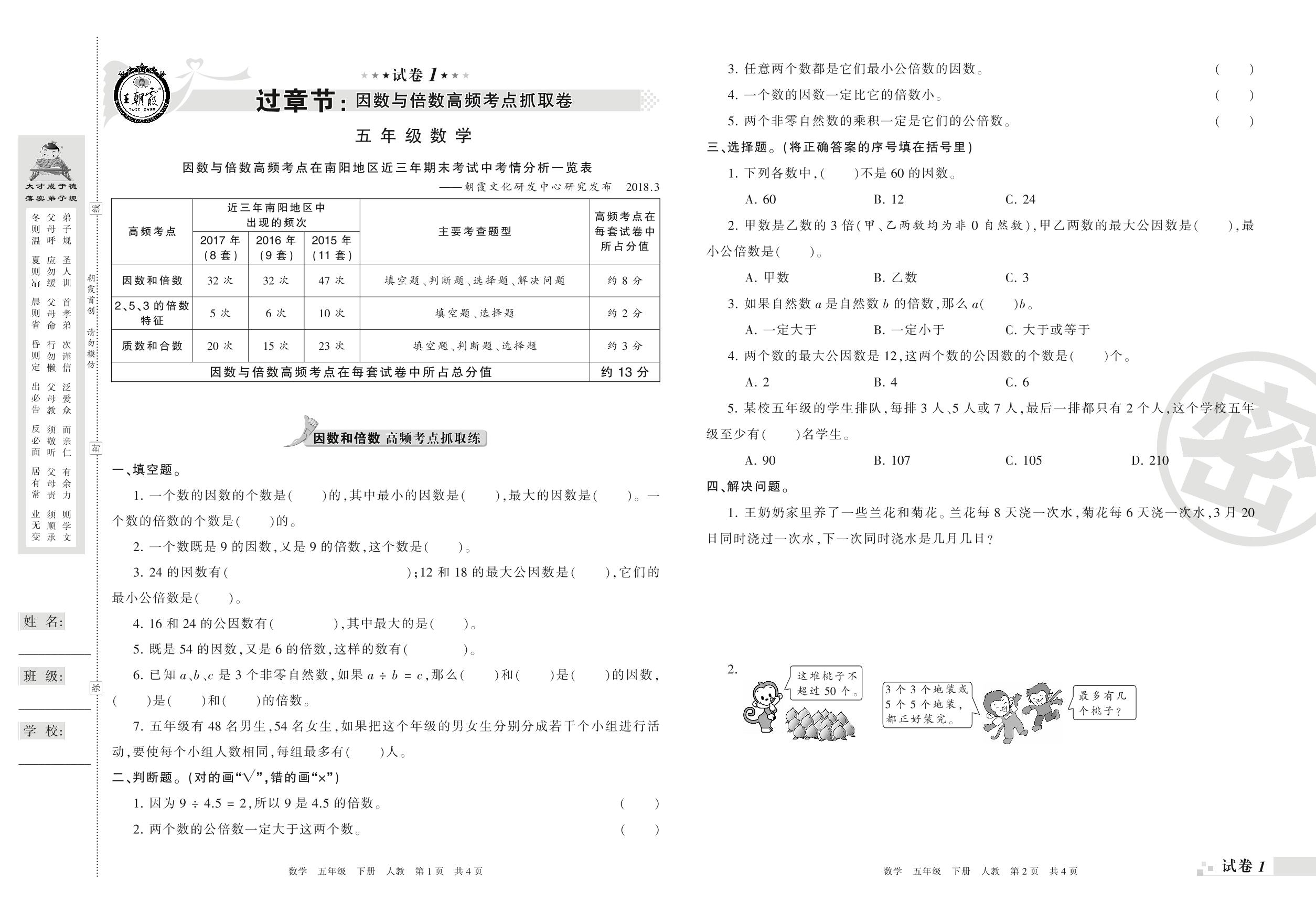王朝霞期末过章节:因数与倍数高频考点抓取卷五年级下册数学(人教版)_R220125145738224【1】