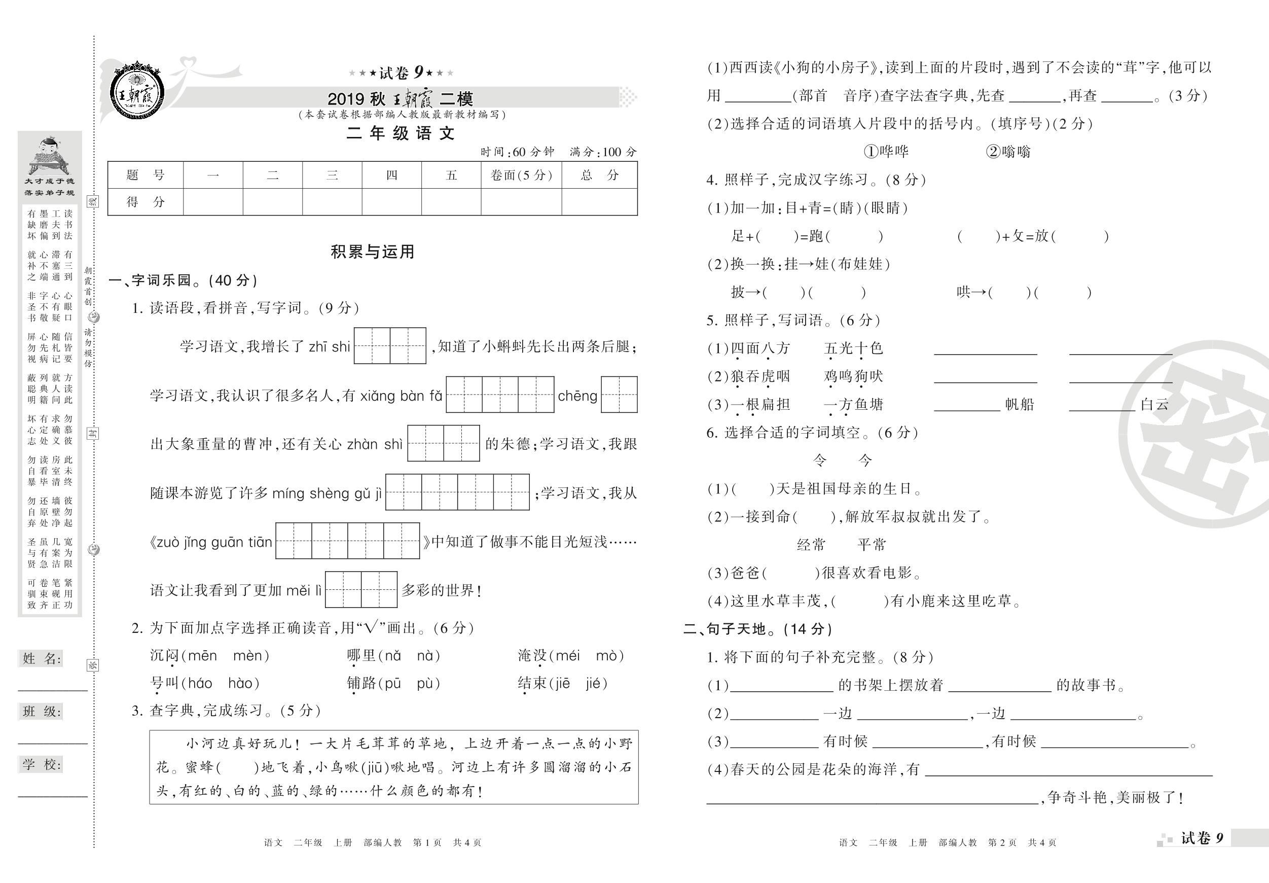 王朝霞期末模拟卷二年级上册语文(人教版)_R21080171818【9】