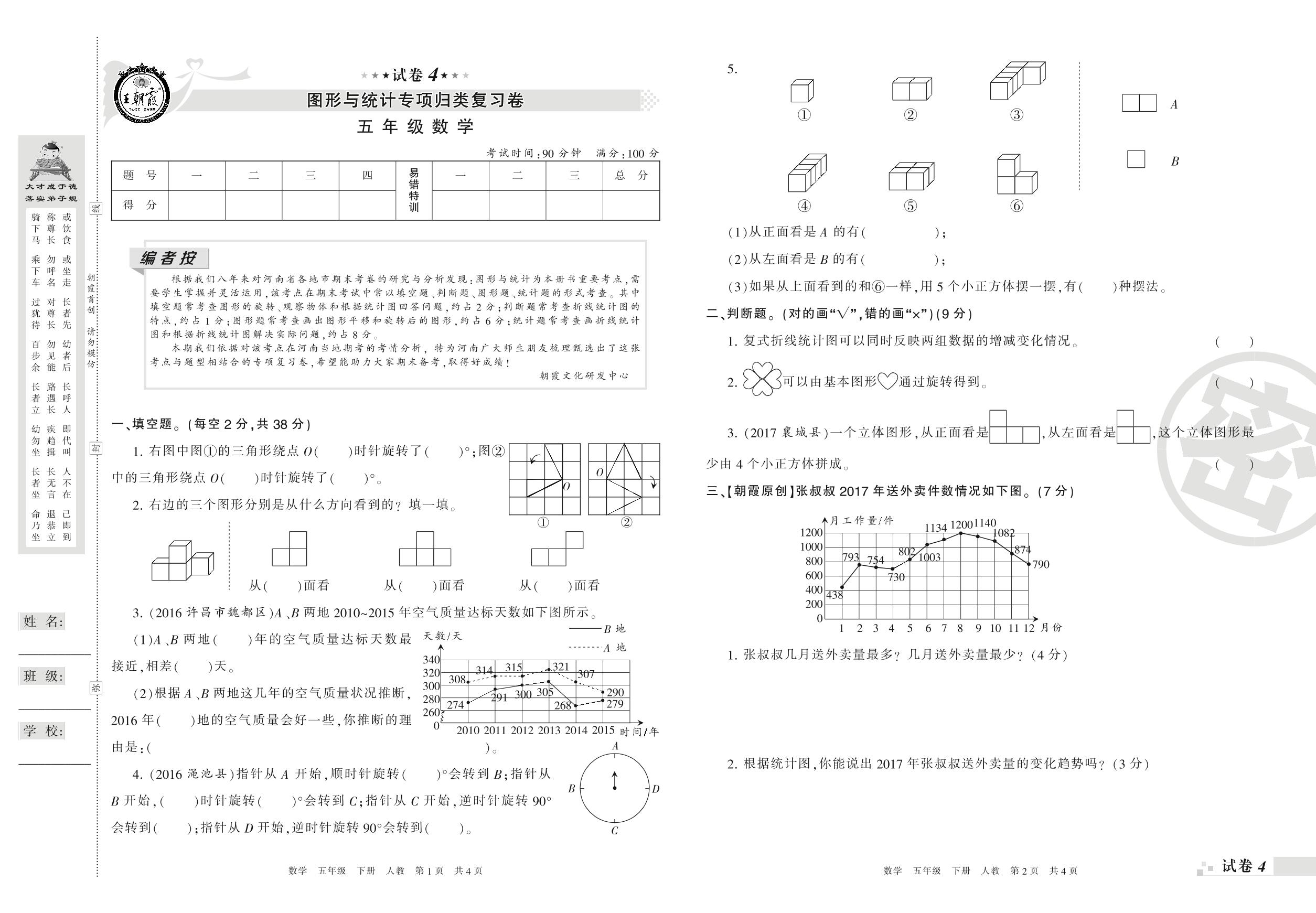 王朝霞期末专项卷——图形与统计专项归类复习卷五年级下册数学(人教版)【4】