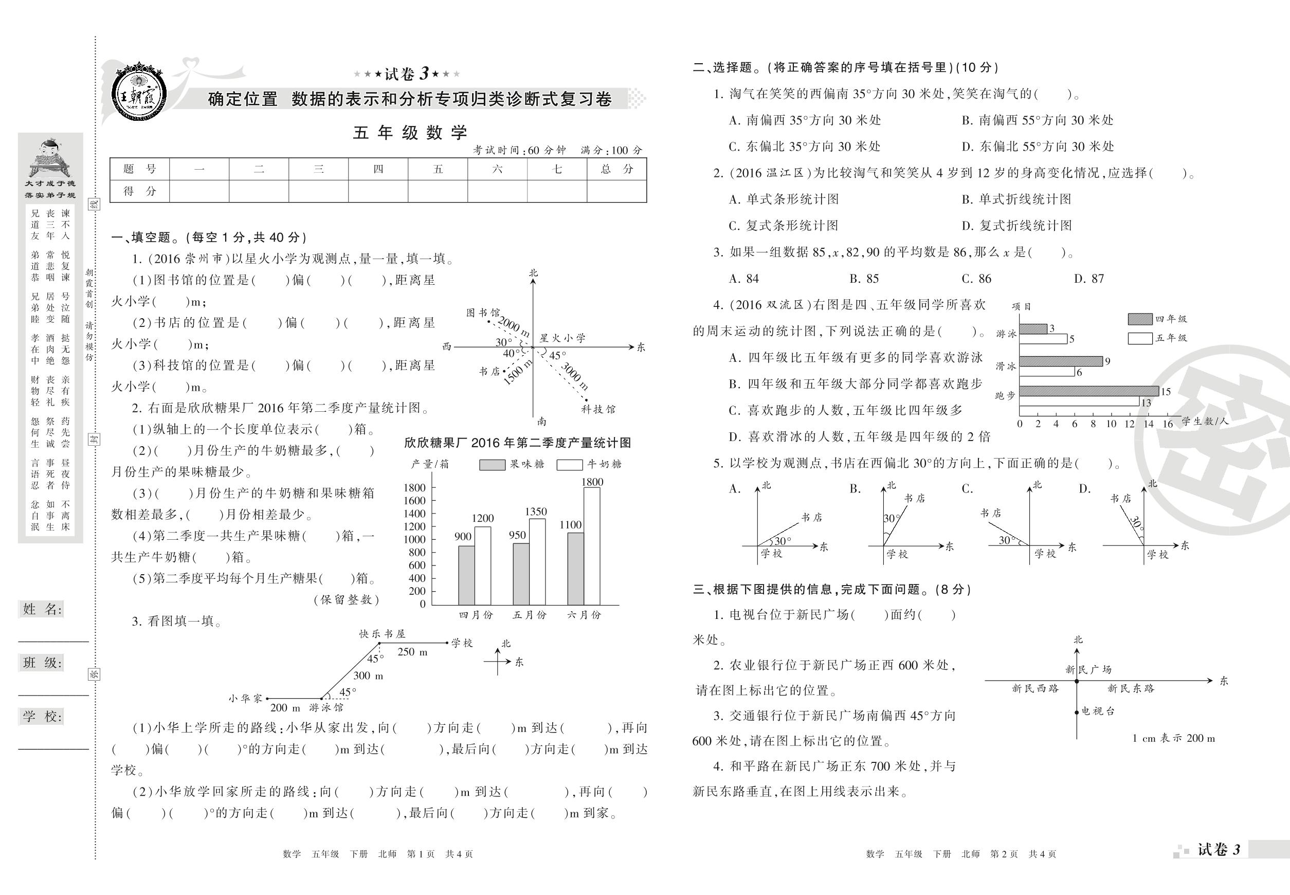 王朝霞期末专项卷——确定位置 数据的表示和分析专项归类诊断式复习卷五年级下册数学(北师版)【3】