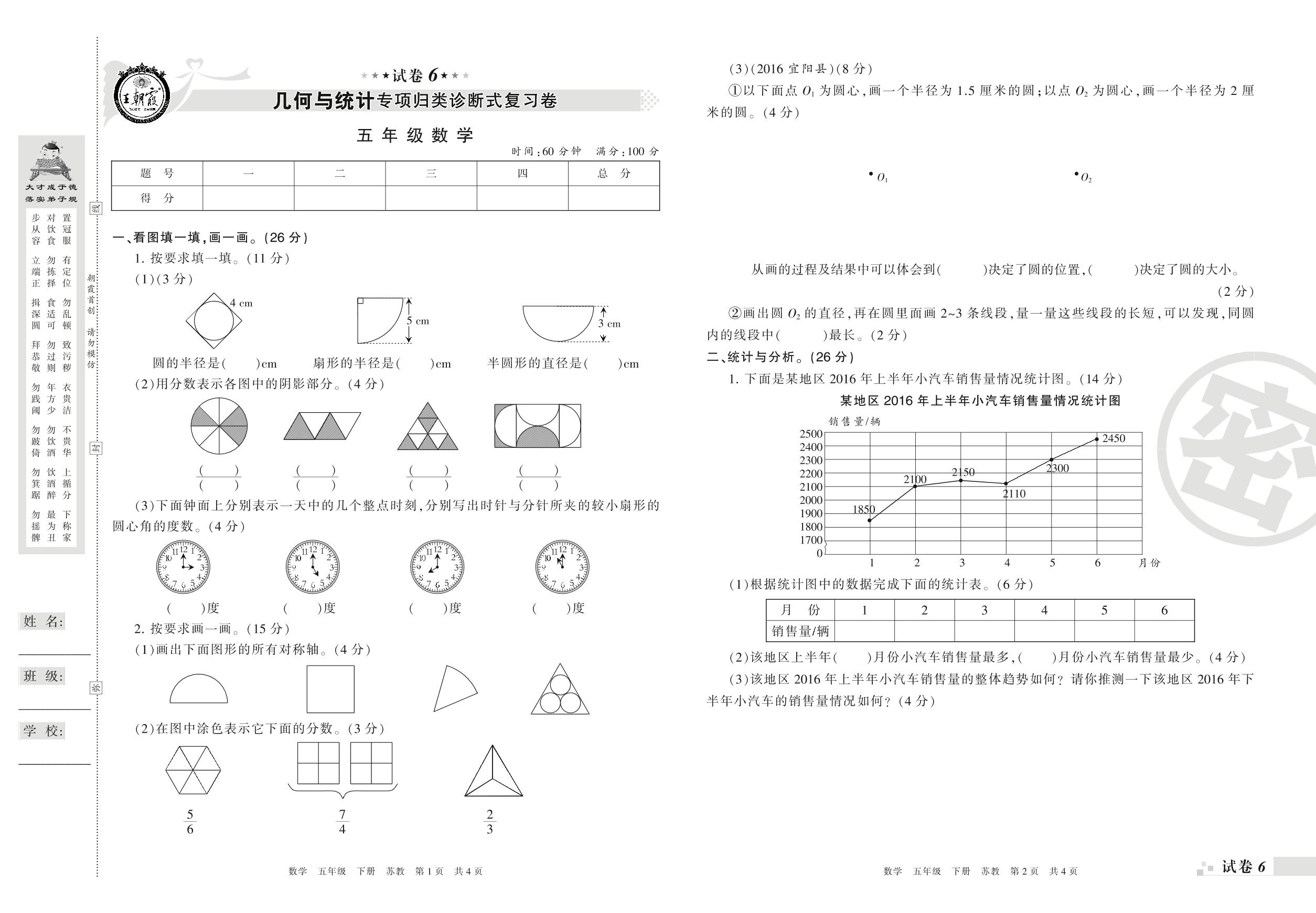 王朝霞期末专项卷——几何与统计专项归类诊断式复习卷五年级下册数学(苏教版)【6】