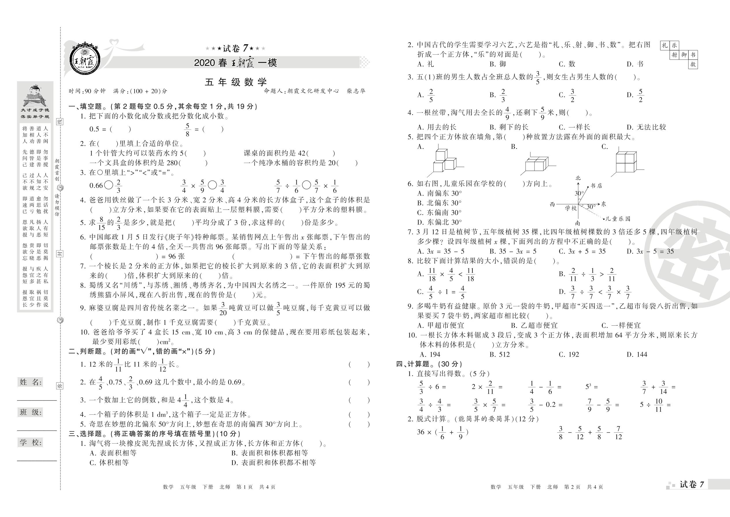 王朝霞期末模拟卷五年级下册数学(北师版)_R21080584507【7】