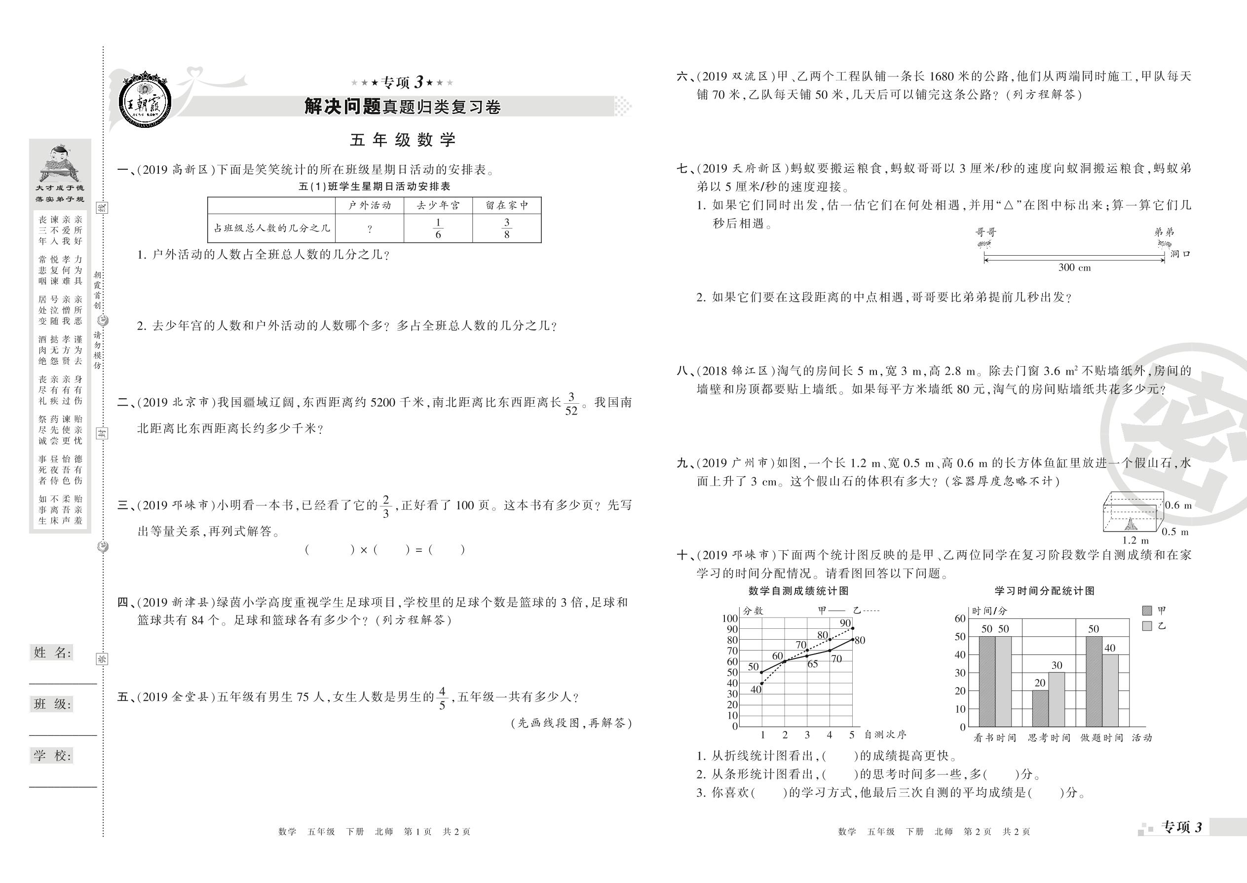 王朝霞期末专项卷——解决问题真题归类复习卷、新颖题速递:生活与数学五年级下册数学(北师版)_R21080584532【0】