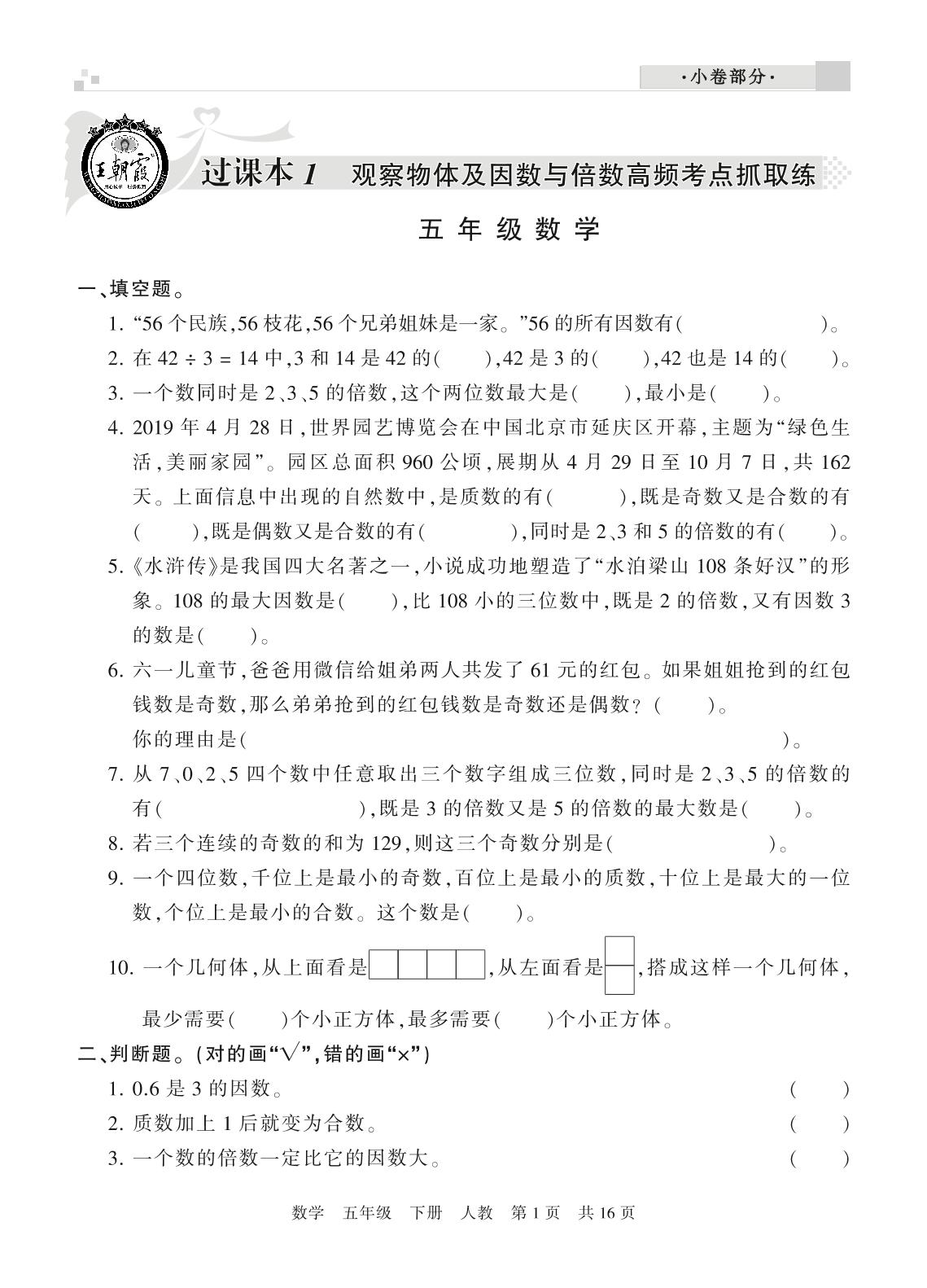 王朝霞期末过课本五年级下册数学(人教版)_R21080584554【0】