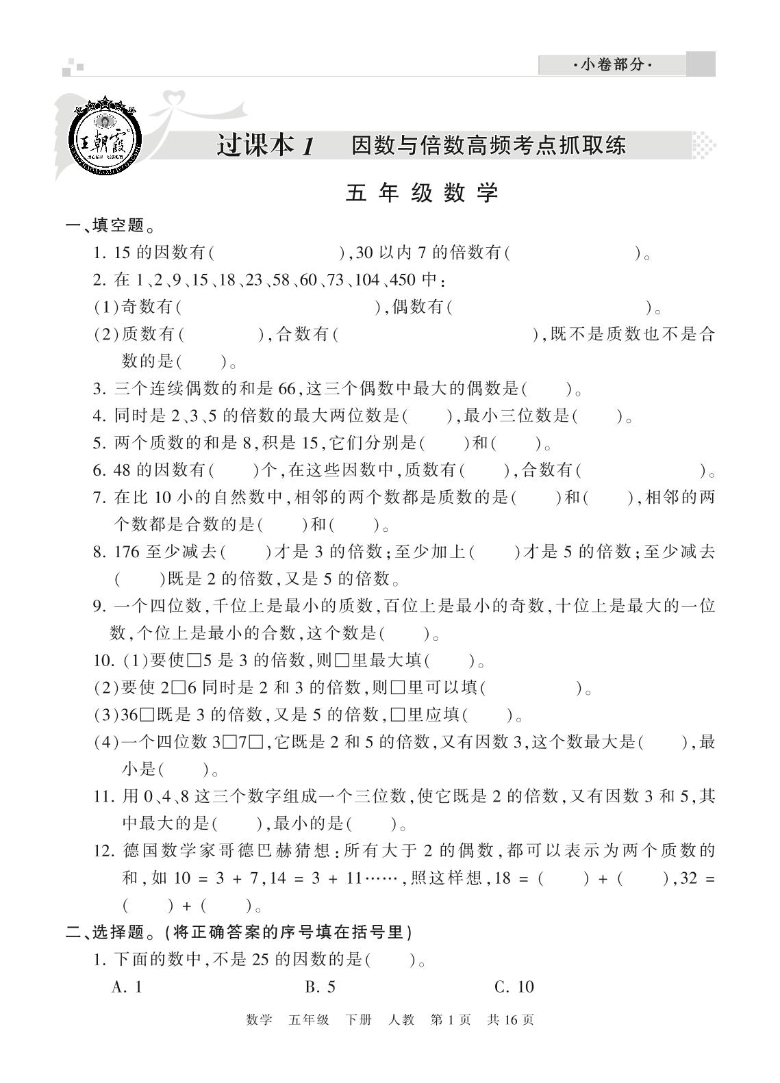 王朝霞期末过课本五年级下册数学(人教版)_R21080584737【0】