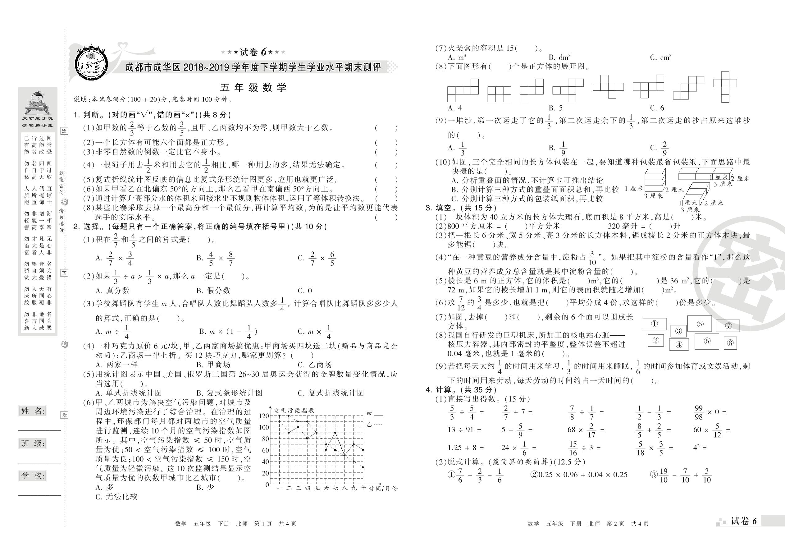 2018-2019学年第二学期成都市成华区五年级数学试卷(北师版)【6】